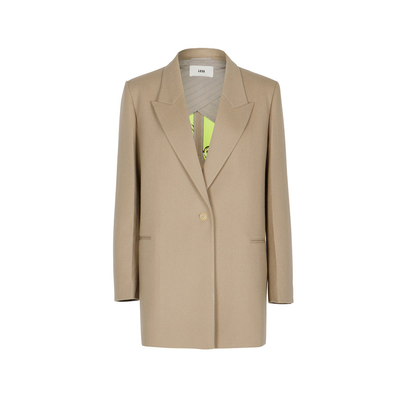 LESS春季绵羊毛外套女简约通勤戗驳领一粒扣毛呢西服2N1710270