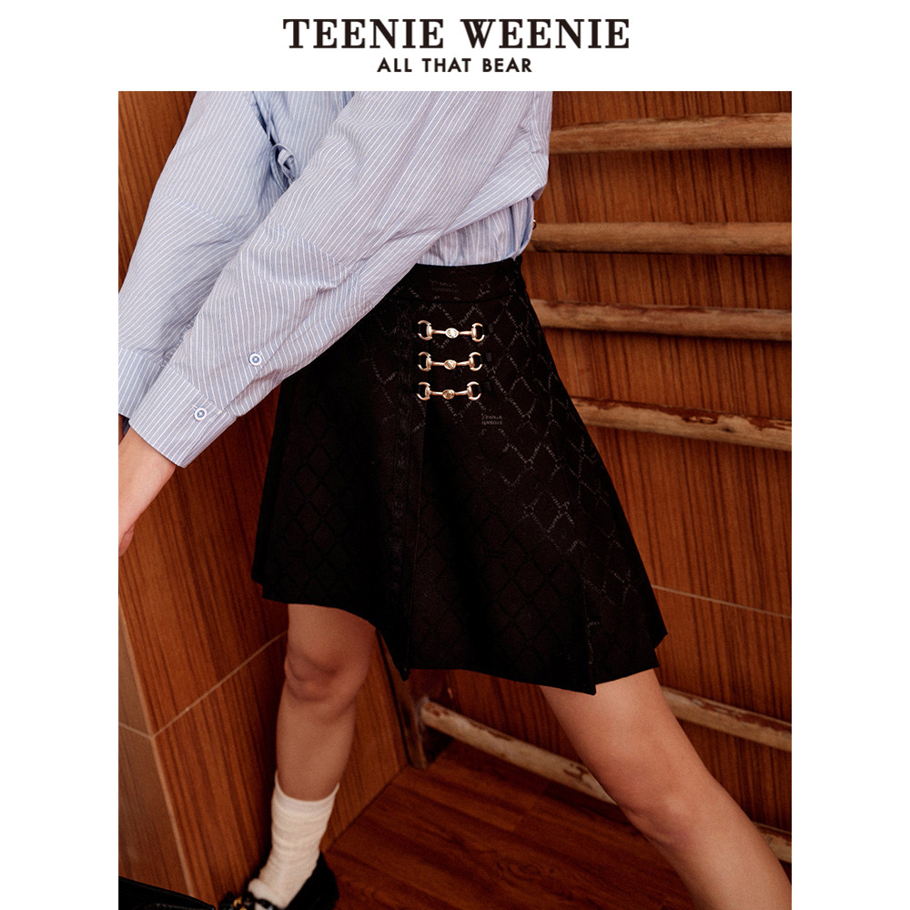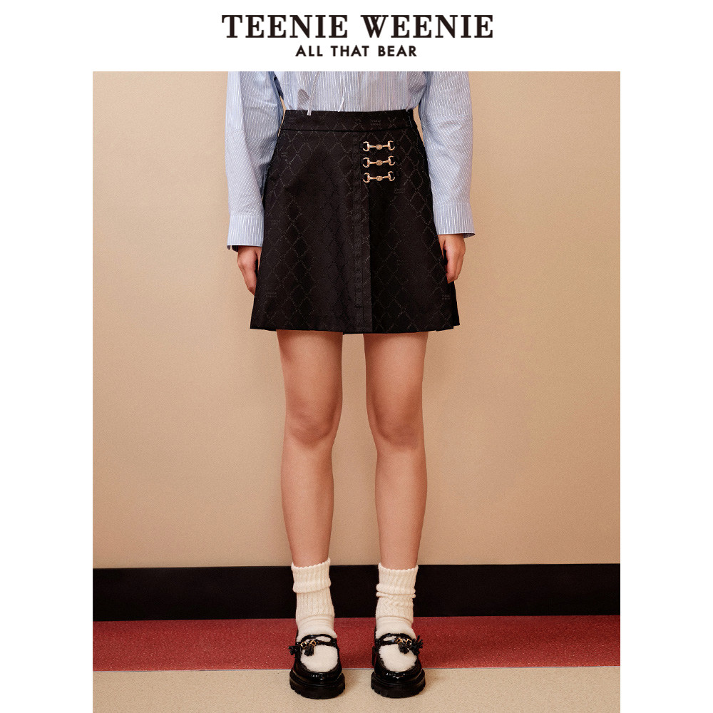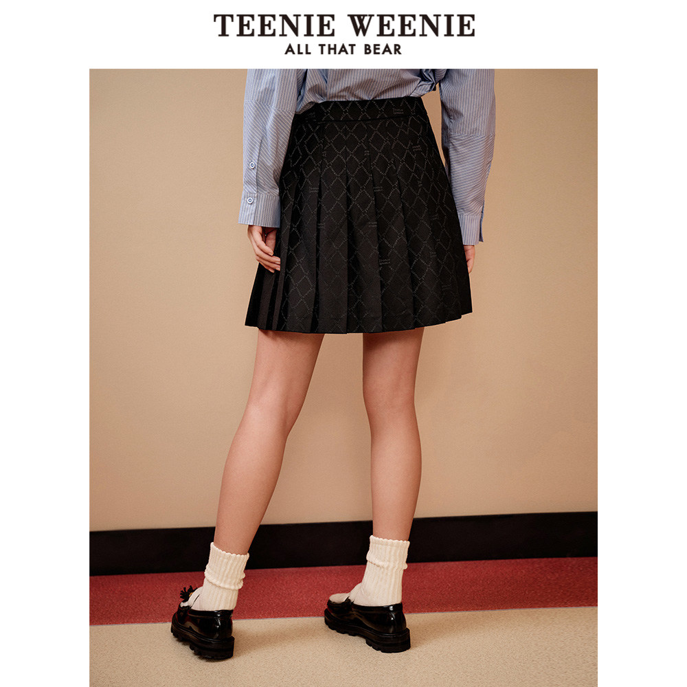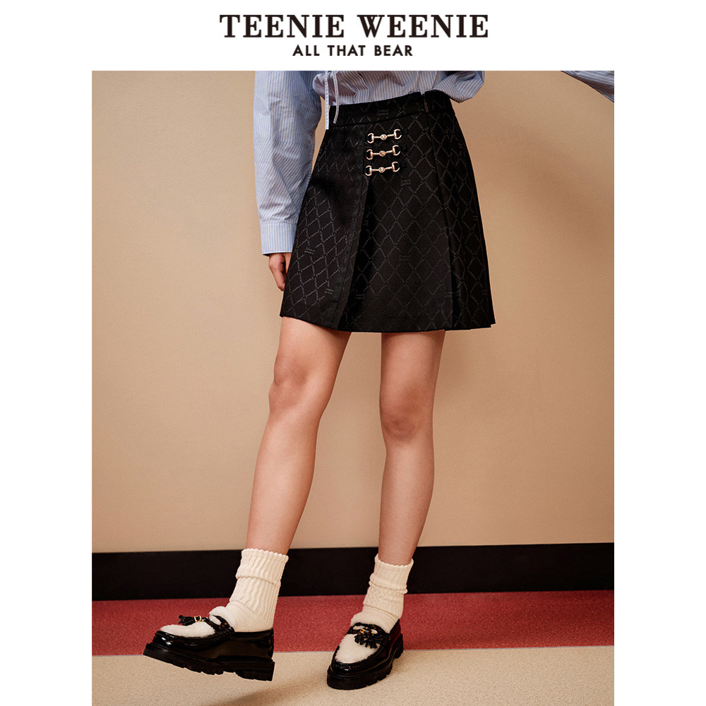 TeenieWeenie小熊奥莱通勤半身裙短裙学院风百褶A字裙金色装饰女