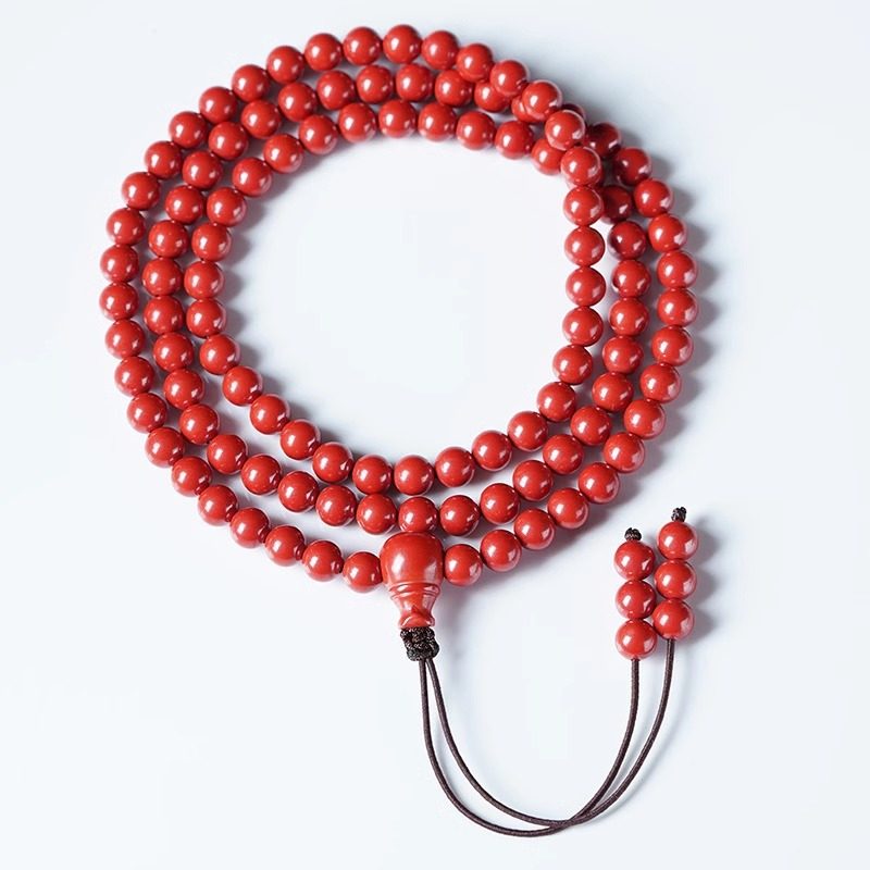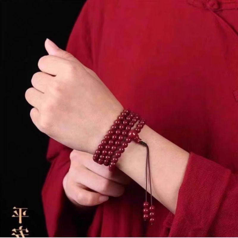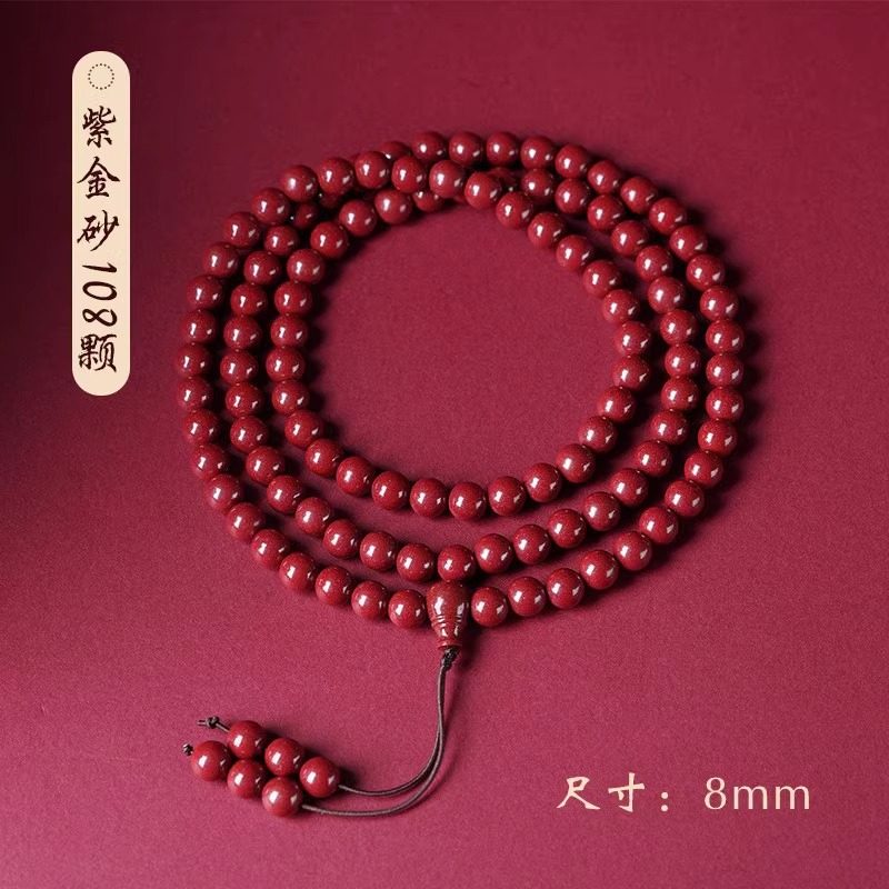 朱砂108颗手链佛珠男女士念珠多圈三圈本命年手串项链紫金砂珠子