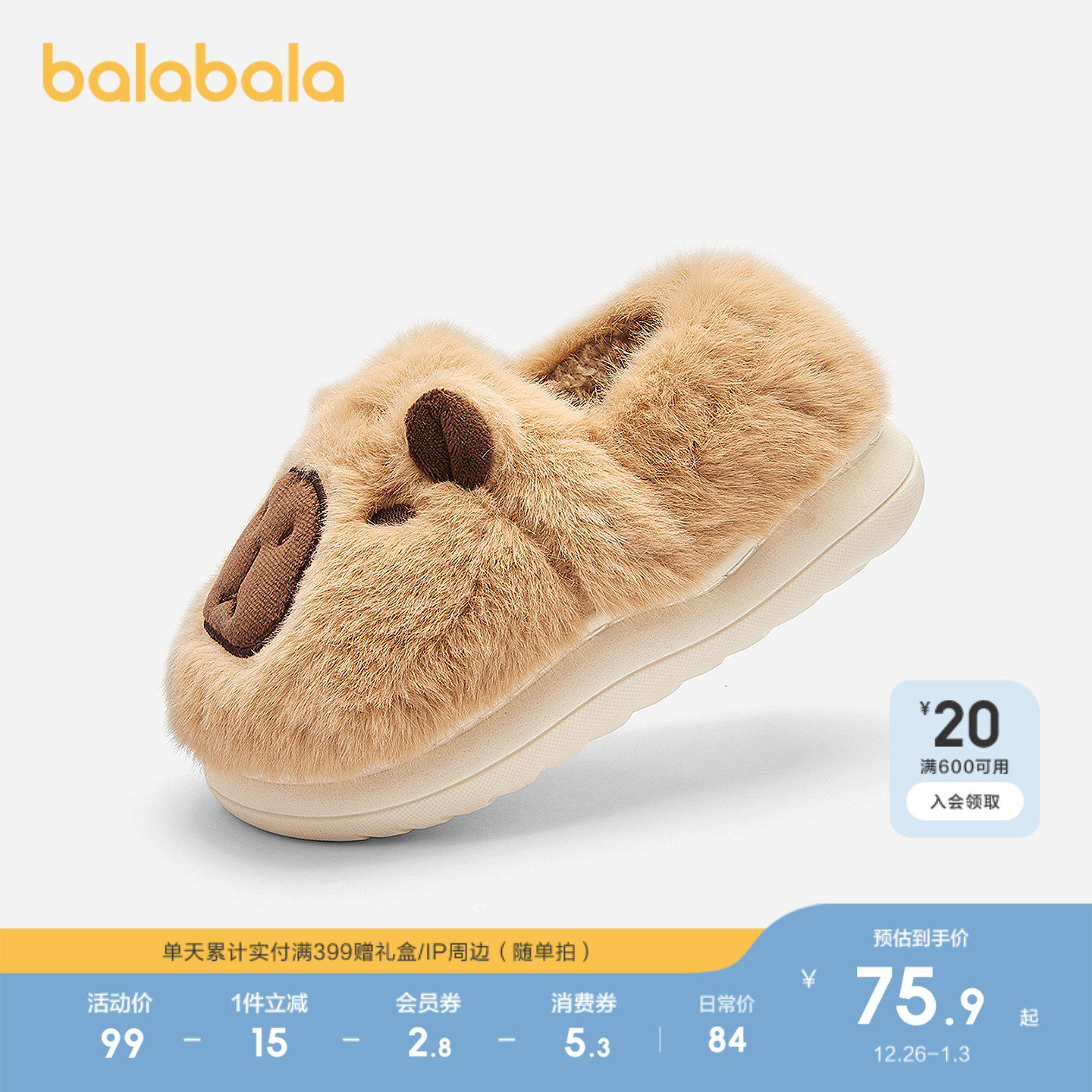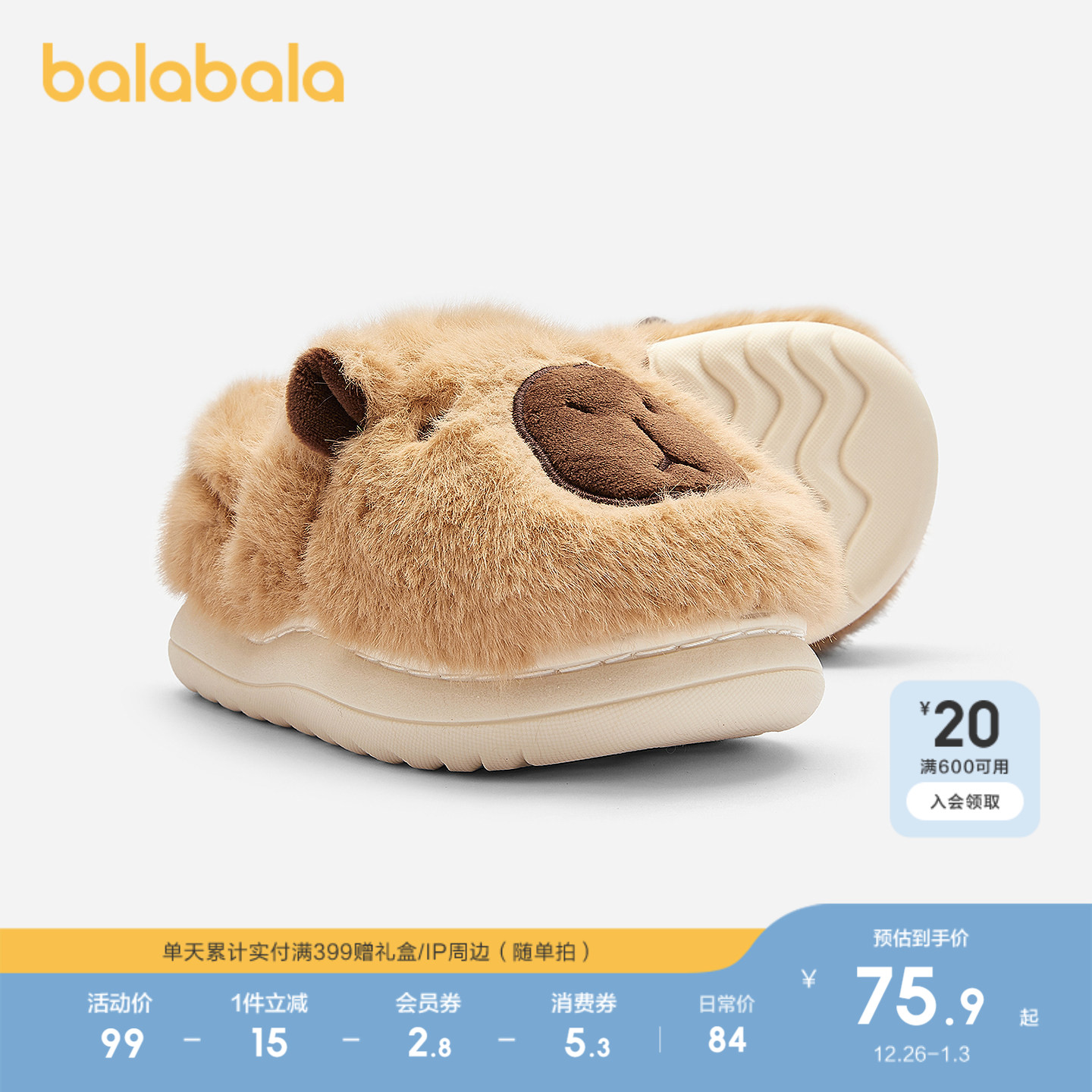 【商场同款】巴拉巴拉男童家居鞋卡皮巴拉棉拖鞋秋冬2025新包跟鞋