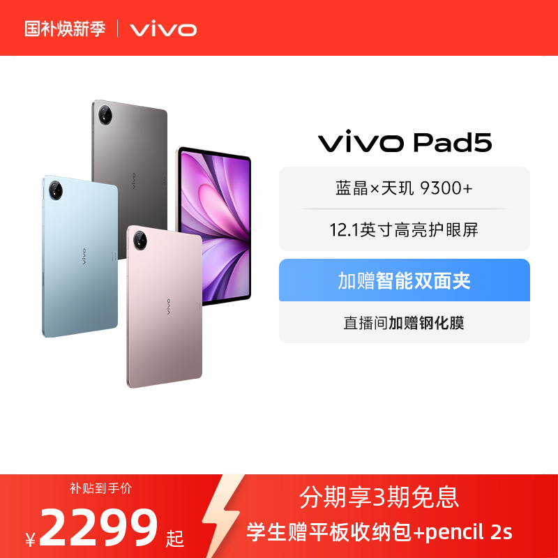 【直播间抢红包 国补至高15%】vivo Pad5平板电脑新款天玑9300+学生官方正品12.1英寸天猫校园