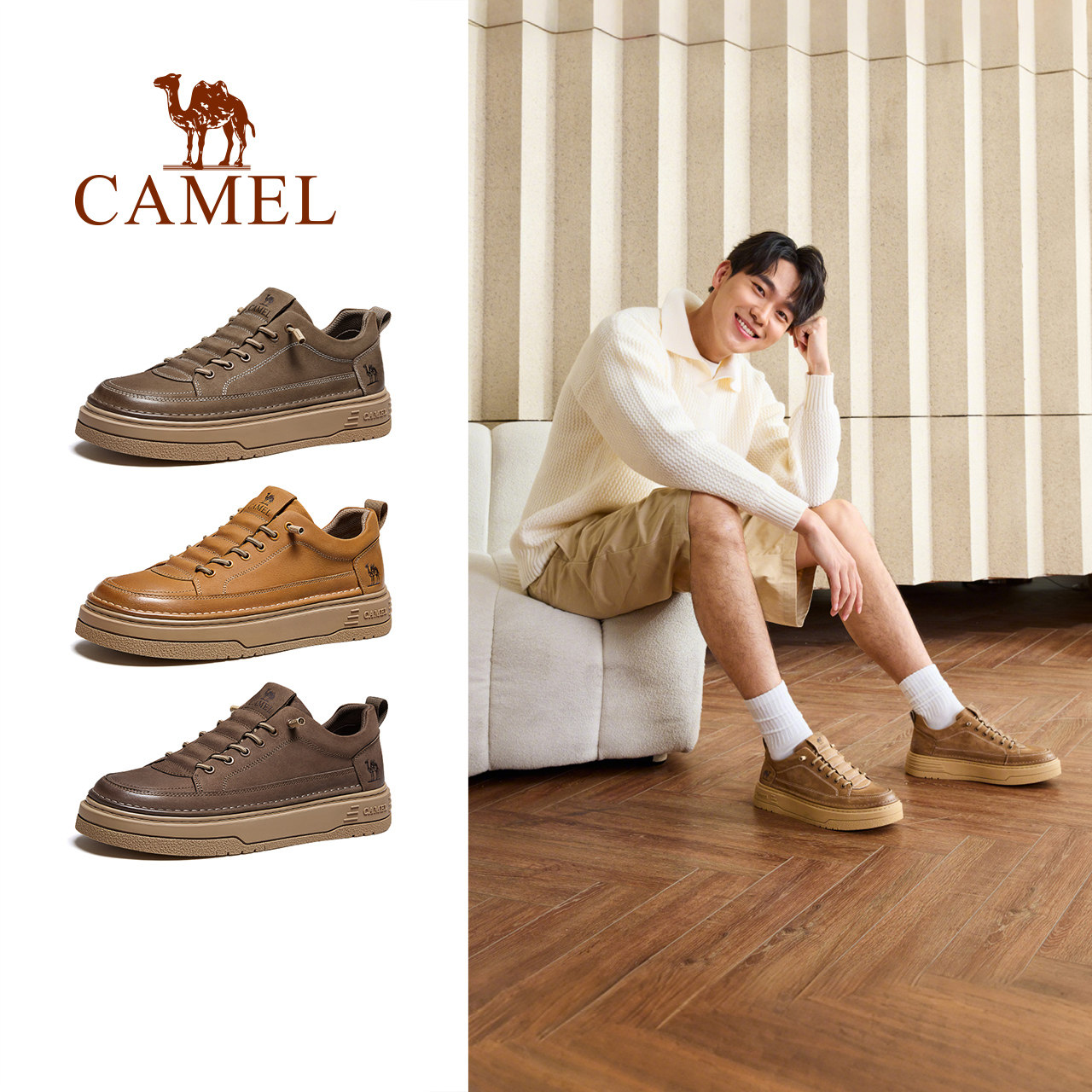 骆驼男鞋2025秋冬新款休闲皮鞋厚底潮流鞋子男士复古真皮工装板鞋
