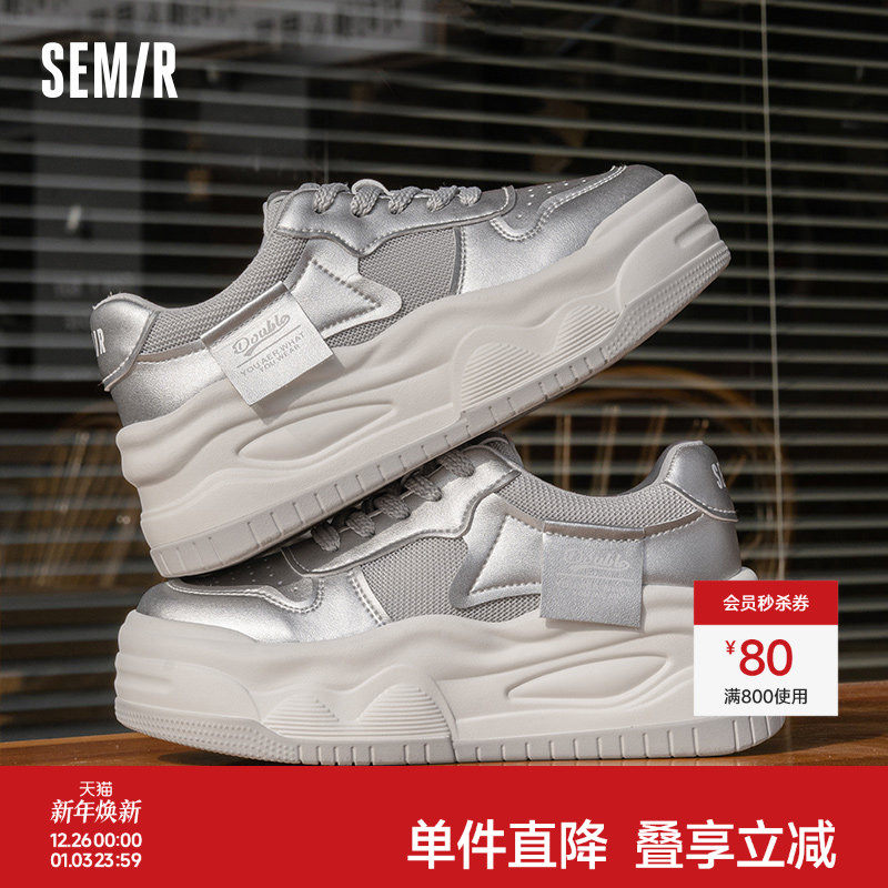 Semir女鞋板鞋2025秋冬季新款厚底设计感爆款潮鞋百搭银色单鞋