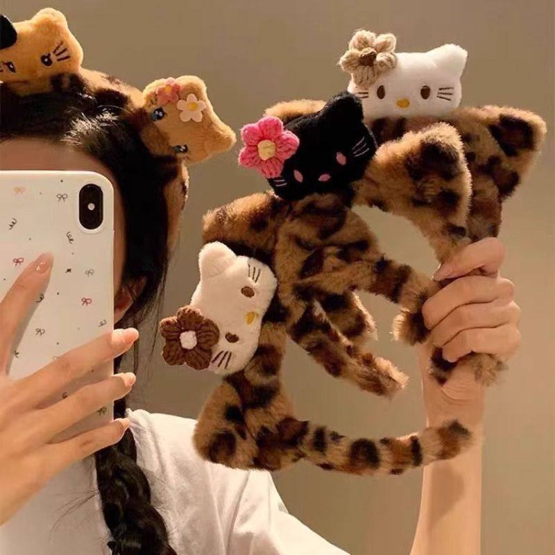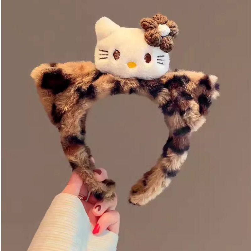 新款可爱卡通hello Kitty猫耳朵豹纹毛绒发箍女洗脸化妆头箍发饰