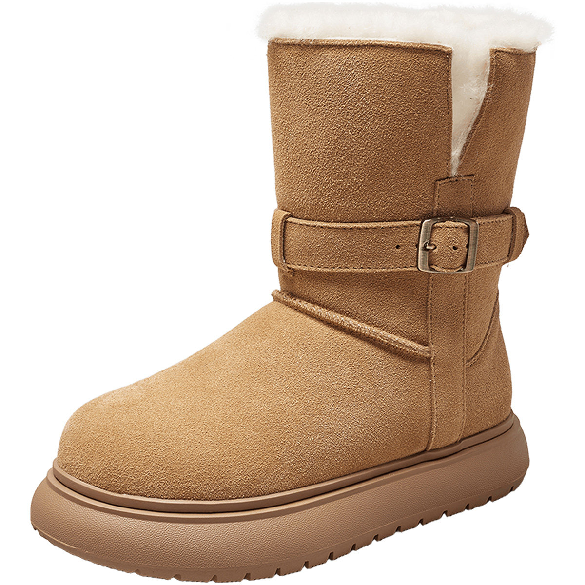 油叽叽~真皮羊毛雪地靴女冬季加绒加厚保暖棉靴厚底增高短筒靴子