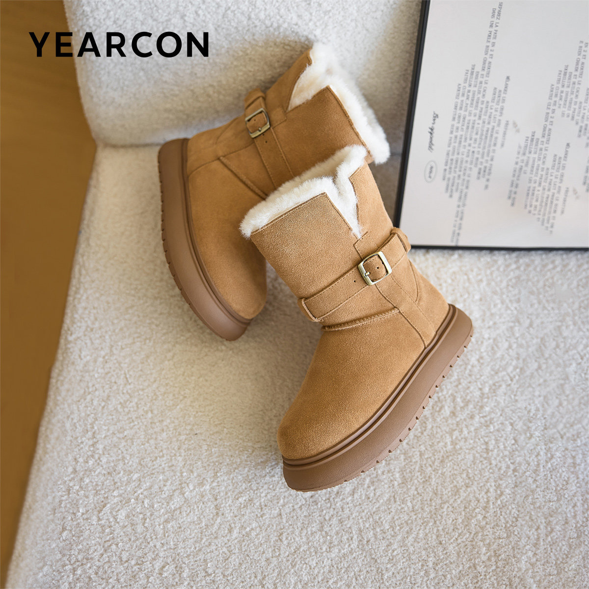 Chio2nd南风 雪地靴棉鞋2024新款冬季女士厚底加绒皮毛一体鞋子