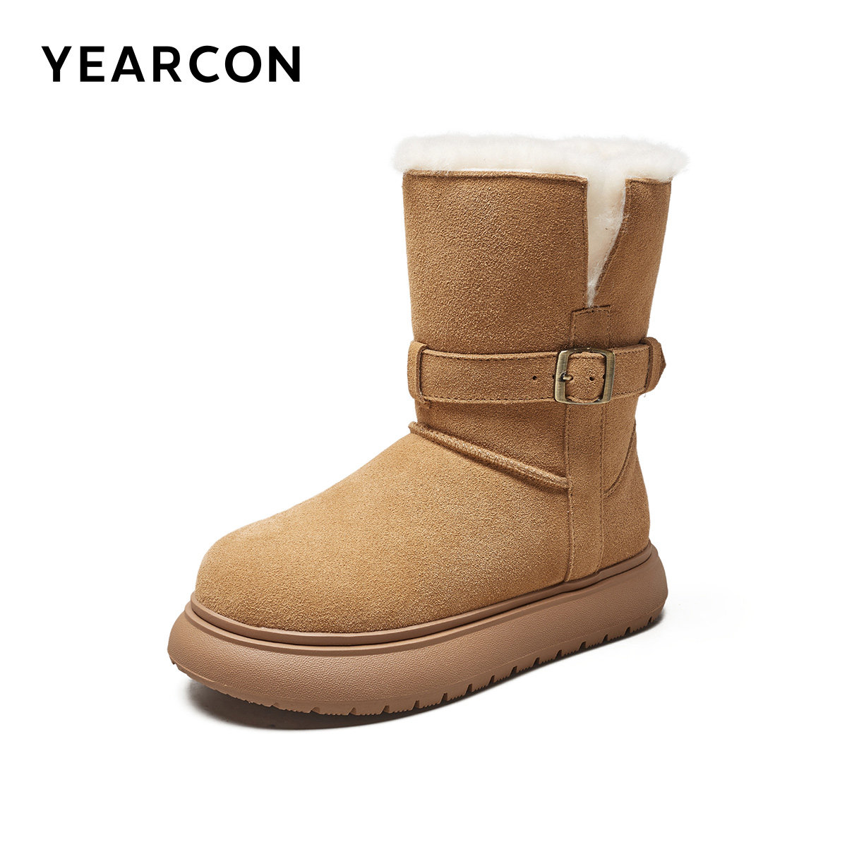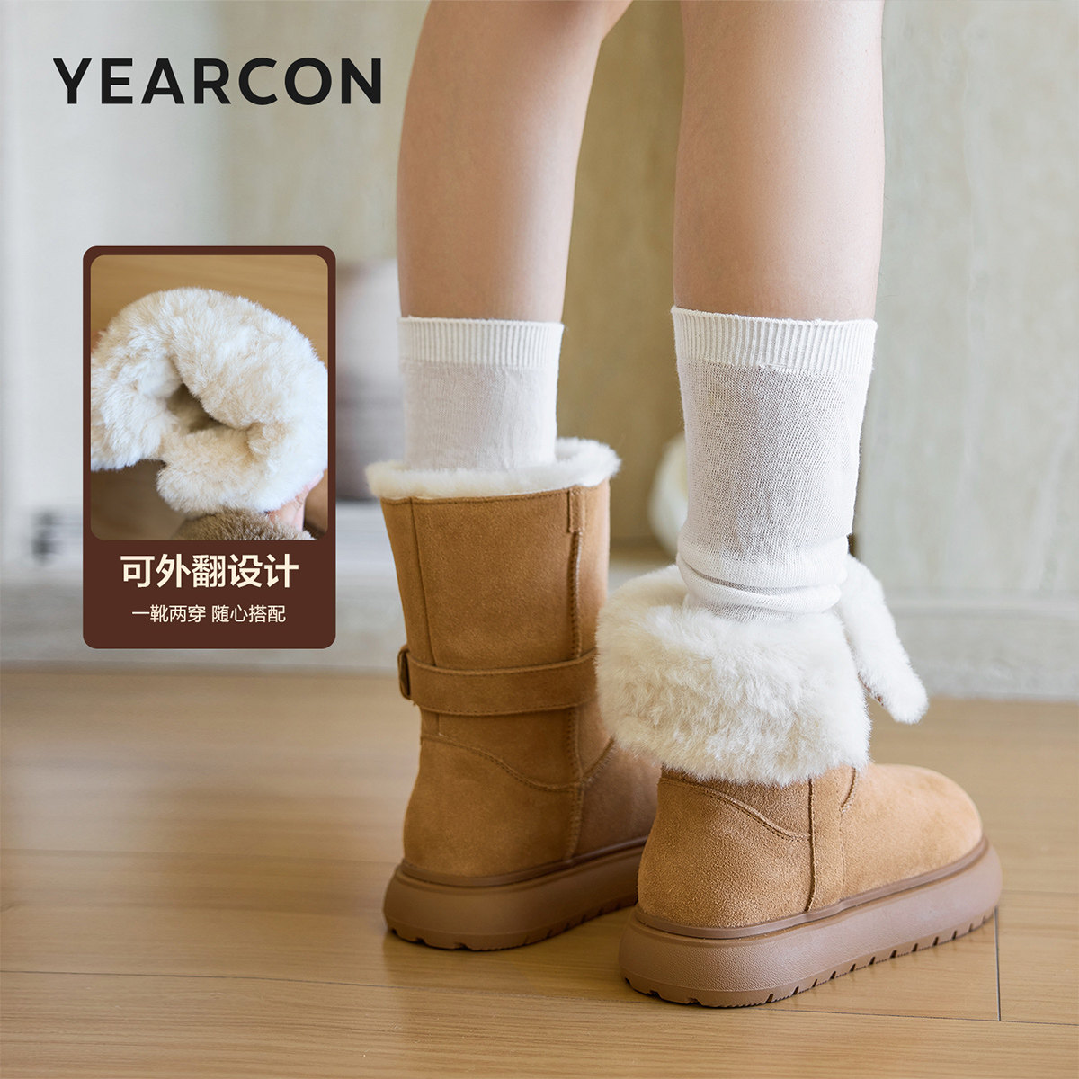 意尔康女鞋2025冬季新款加绒保暖高筒棉鞋平底中筒雪地靴户外休闲