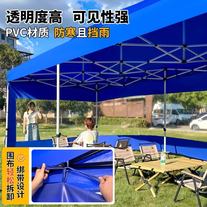 帐篷围布透明摆摊四脚伞户外加厚四面挡风围挡布四周冬天围边棚子