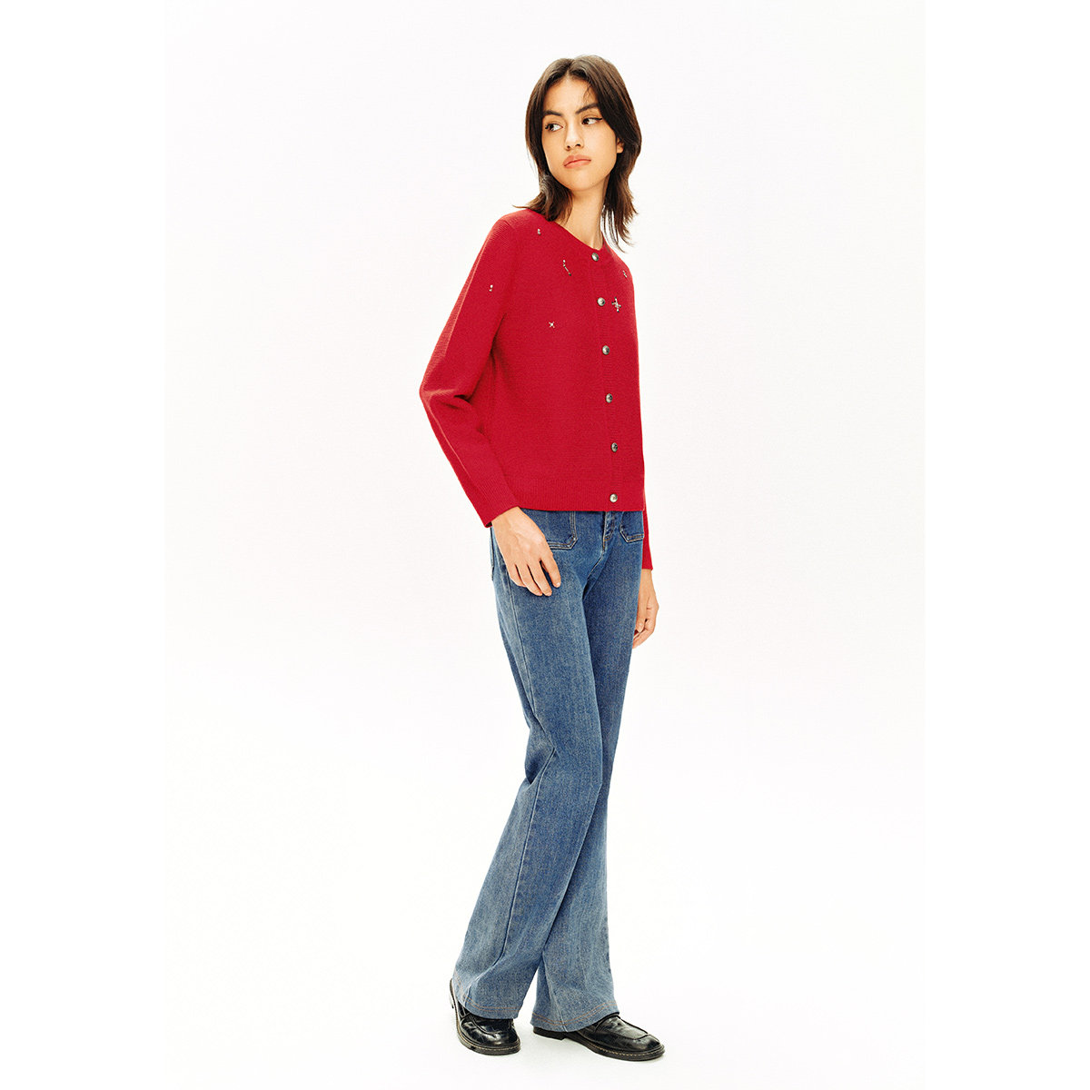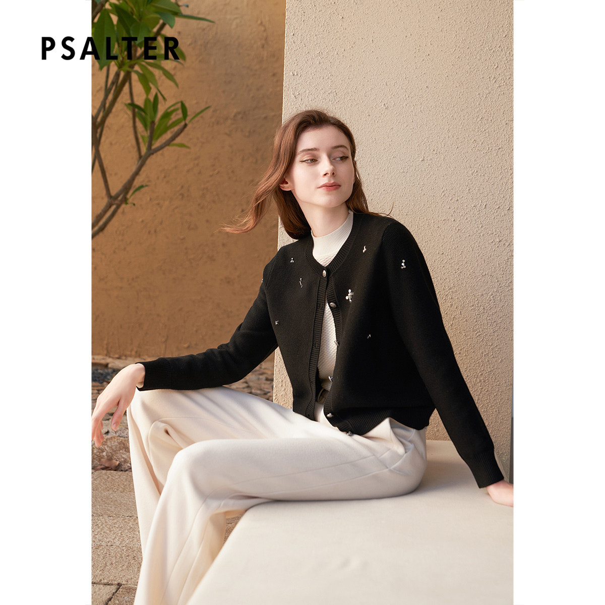 【美丽诺羊毛】诗篇专选重工感手工钉珠学院肌理开衫针织衫秋款