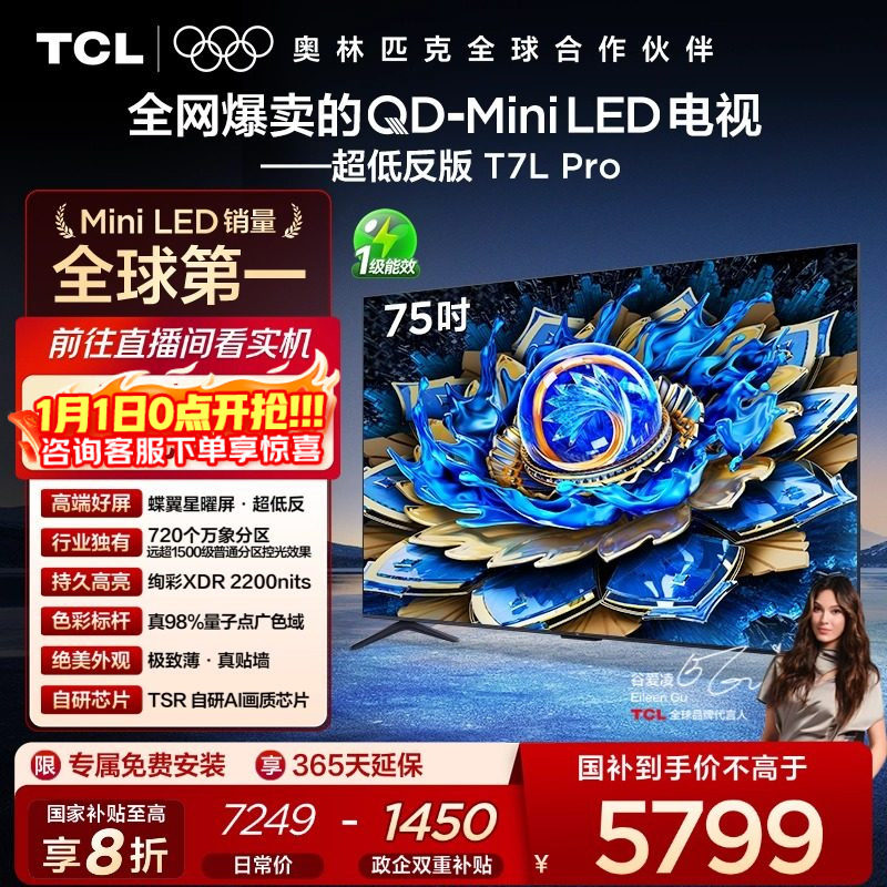 TCL电视 75T7L Pro 75英寸 QD-Mini LED 华星蝶翼星曜屏电视官方