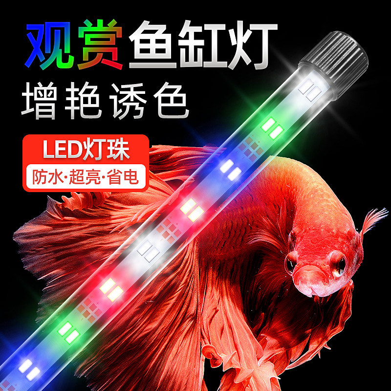 鱼缸灯led灯照明水族箱潜水灯水草灯防水龙鱼灯管三基色七彩增艳