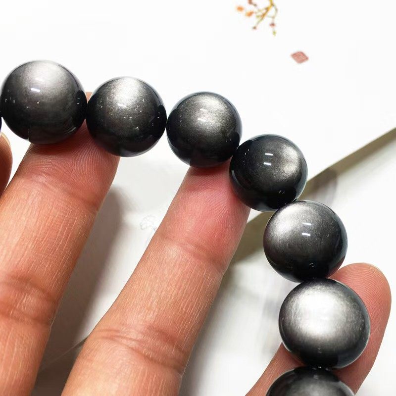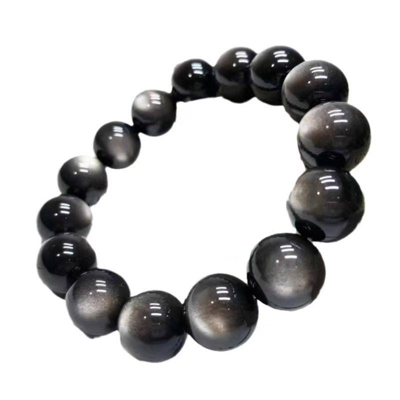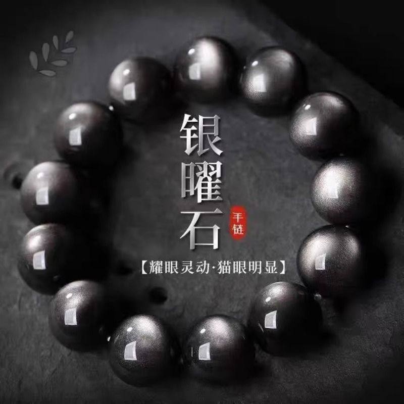 7A级双眼银曜石金曜石彩虹眼黑曜石手链男女水晶佛珠转运手串