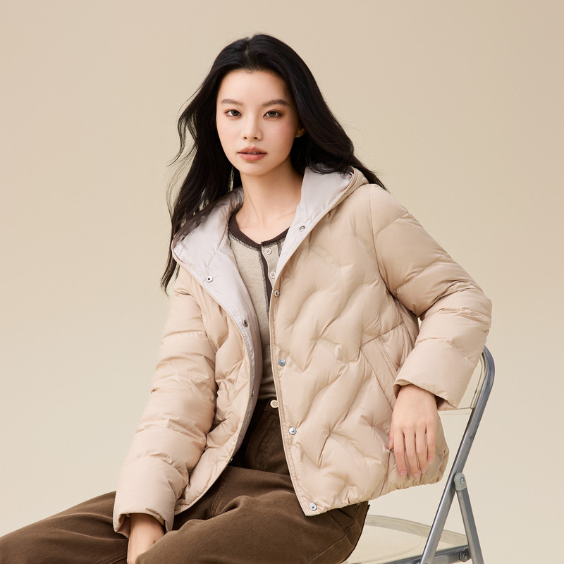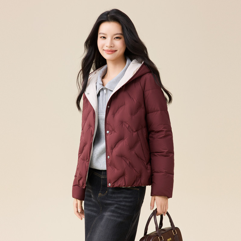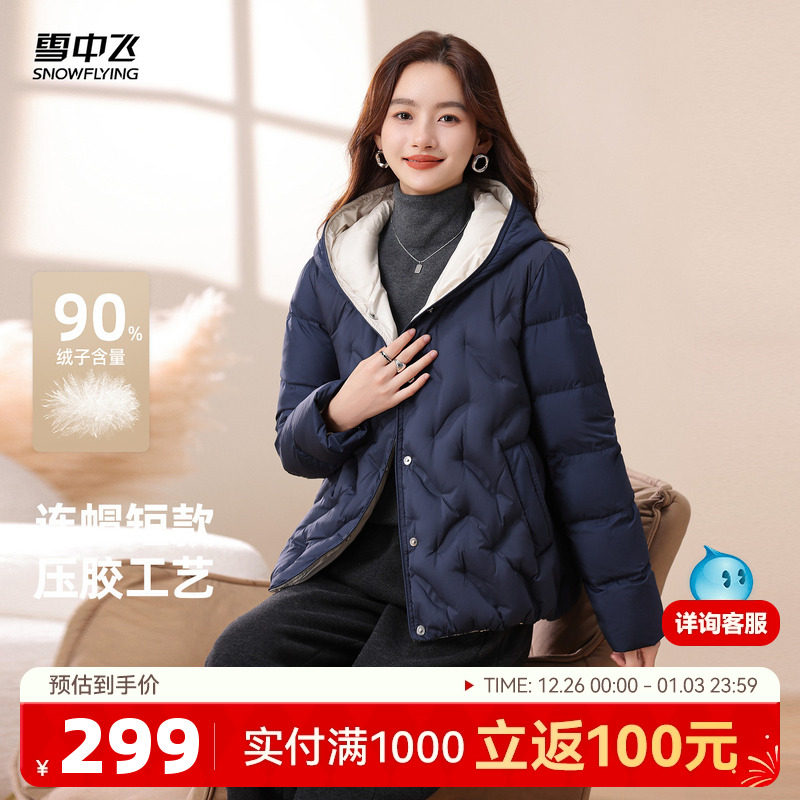 雪中飞2025冬新款女士户外撞色轻薄连帽羽绒服直筒韩版小短款