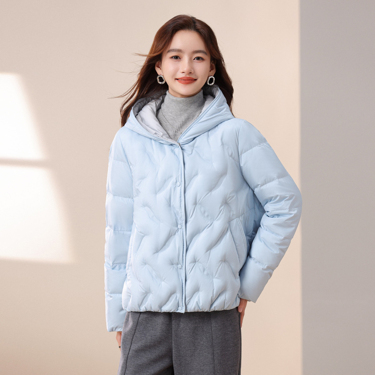 佟丽娅明星同款鸭鸭轻薄羽绒服女2025冬新款保暖连帽休闲内胆外套