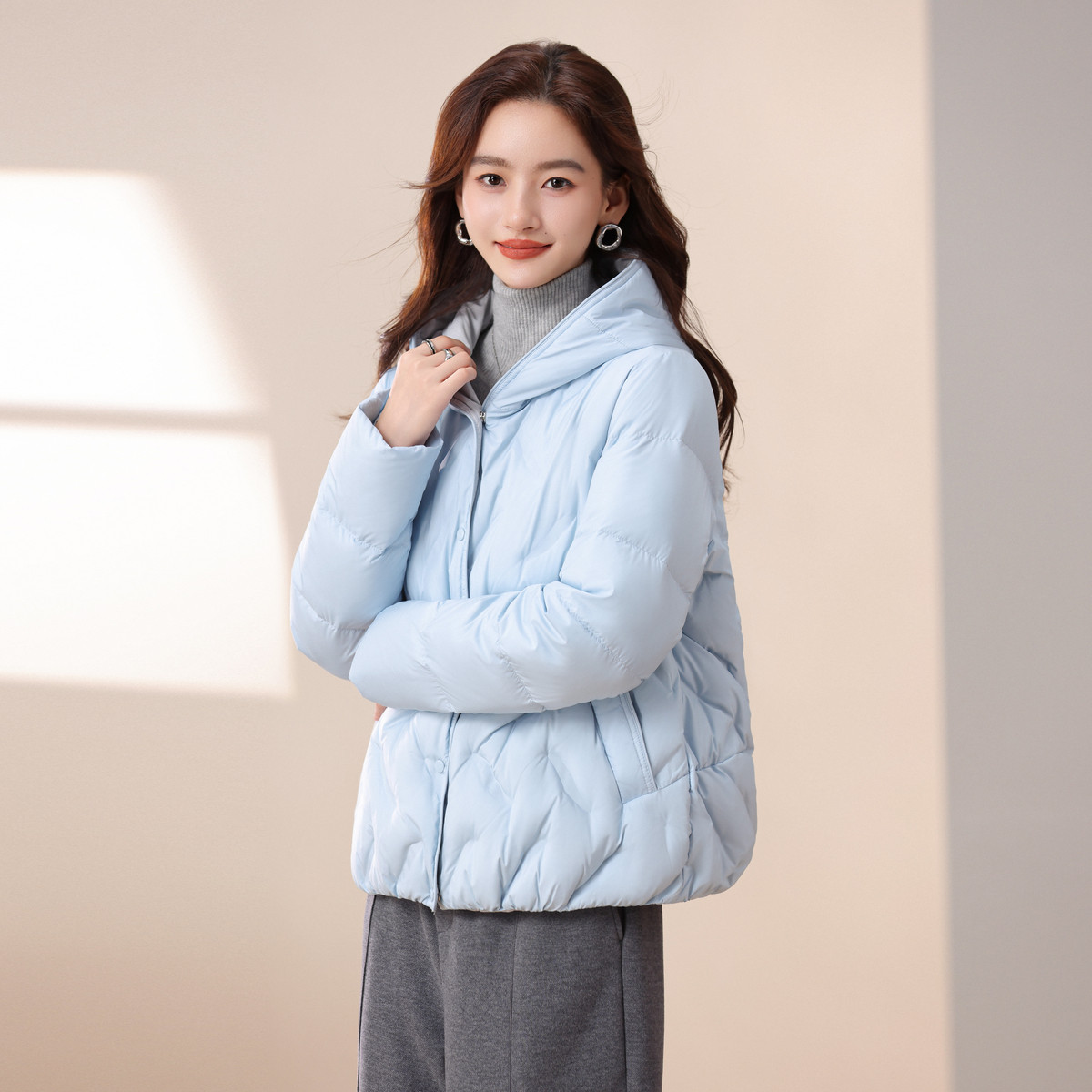 轻薄羽绒服女新款短款连帽保暖白鸭绒排骨爆款秋冬季大码轻便外套