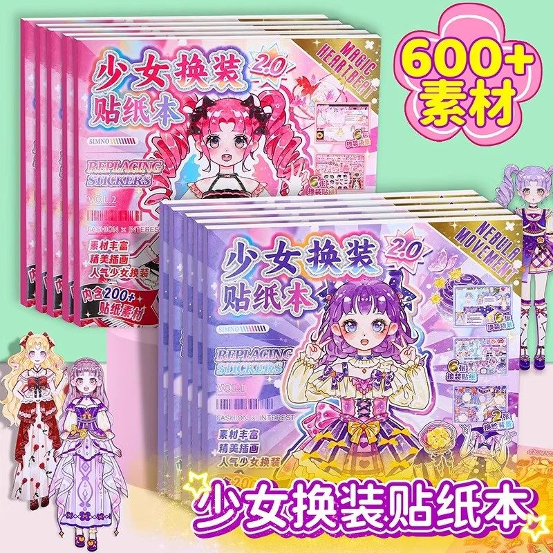 少女换装安静书贴纸新款免裁剪高颜值儿童贴纸本可爱卡通贴贴画公主衣橱贴纸册女孩手工diy手帐装饰生日礼物