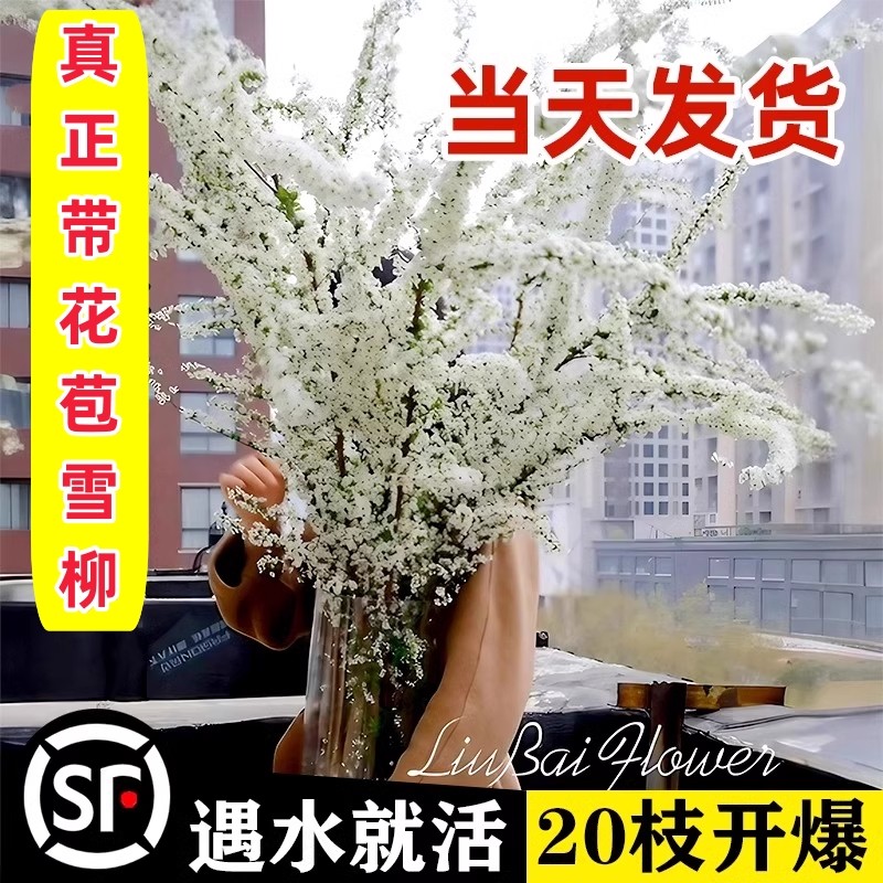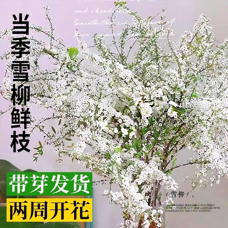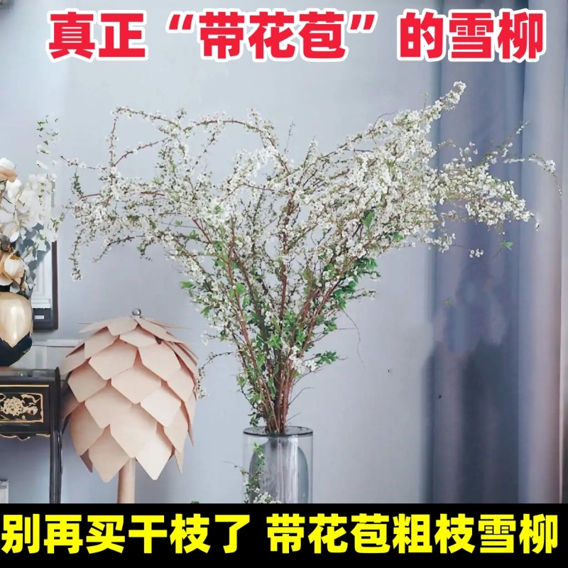 雪柳鲜枝干枝水培植物室内干枝龙柳绿植泡水长叶鲜花干支遇水开花