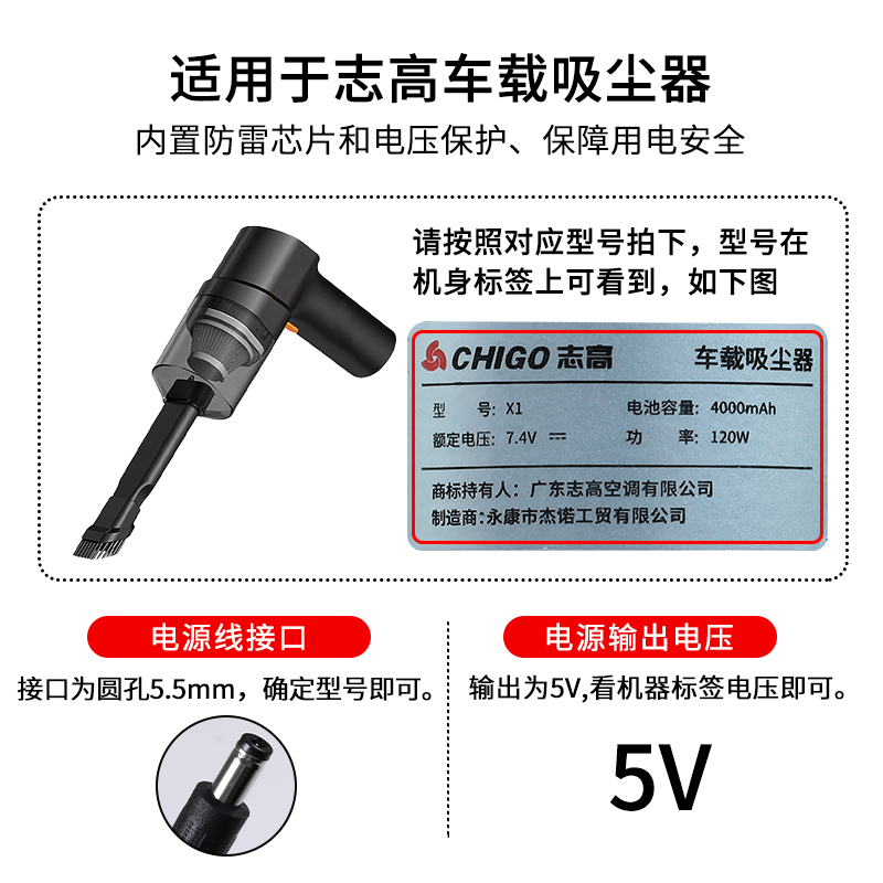 适用8.4V1A锂电池充电器通用志高X1车载手持吸尘器ZH–6120A RT8821电源充电器7.4v8.4V9V1A电压源线