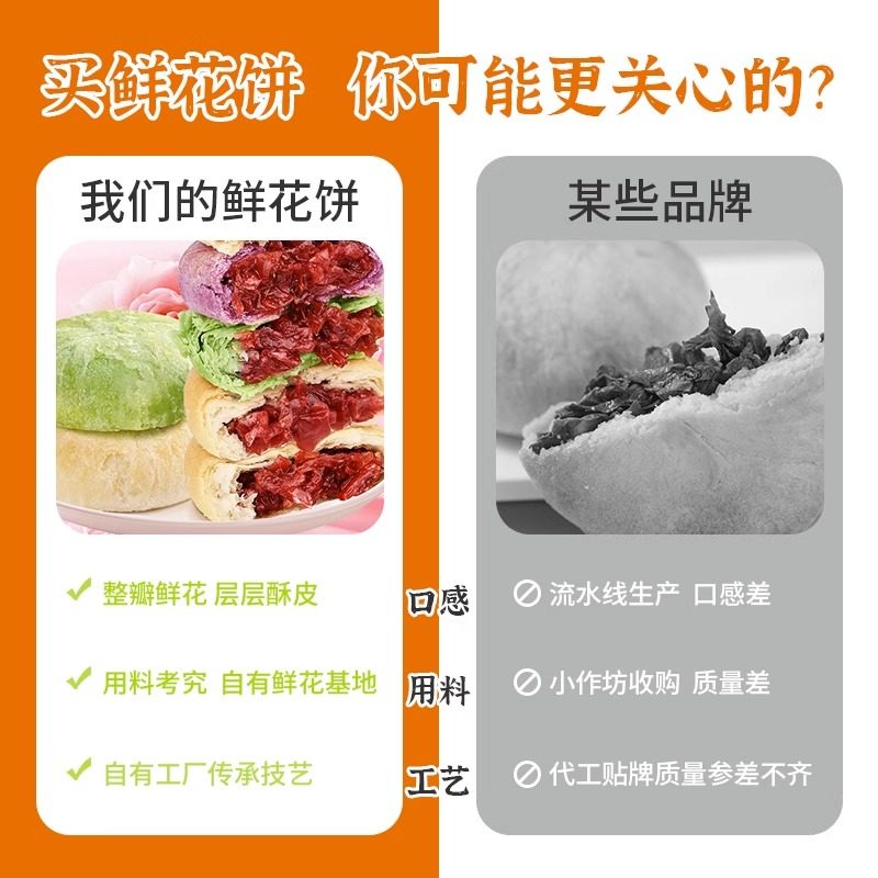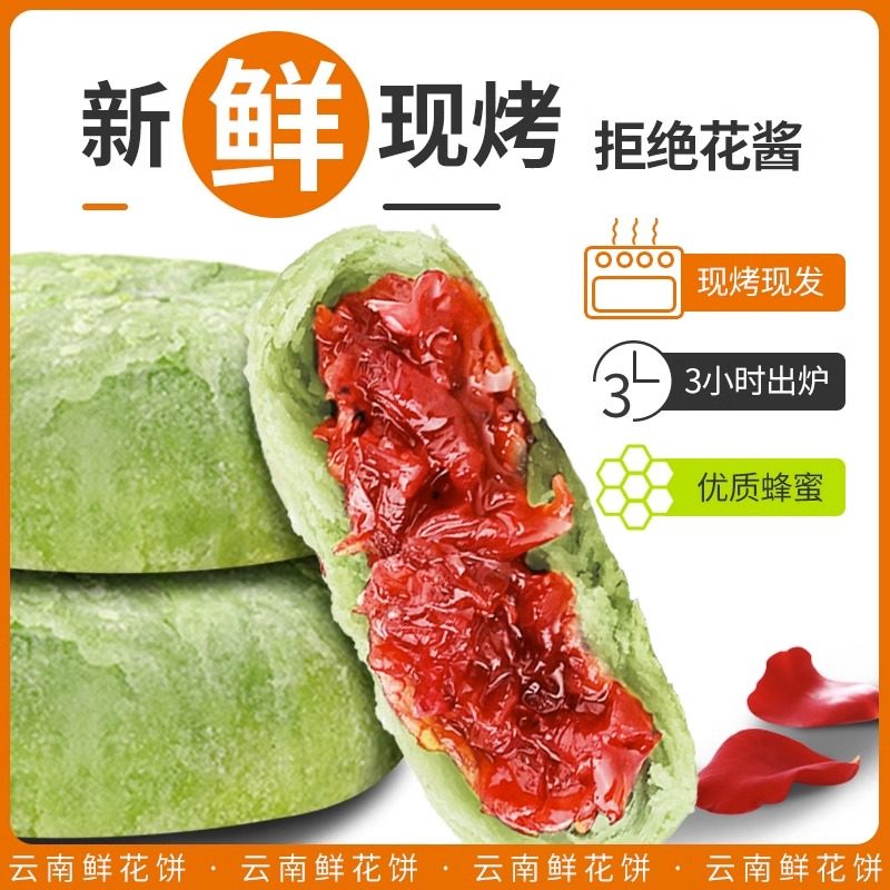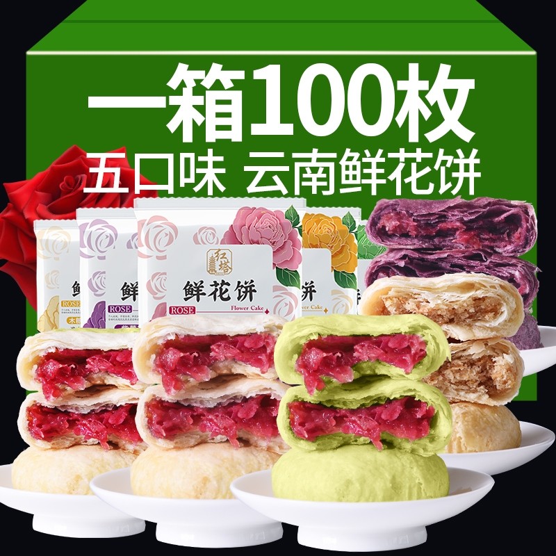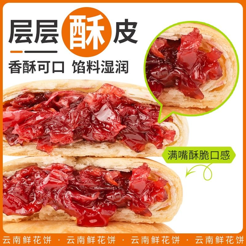 100玫红塔鲜花饼云南特产玫瑰花饼木糖醇现烤早餐零食解馋糕点心