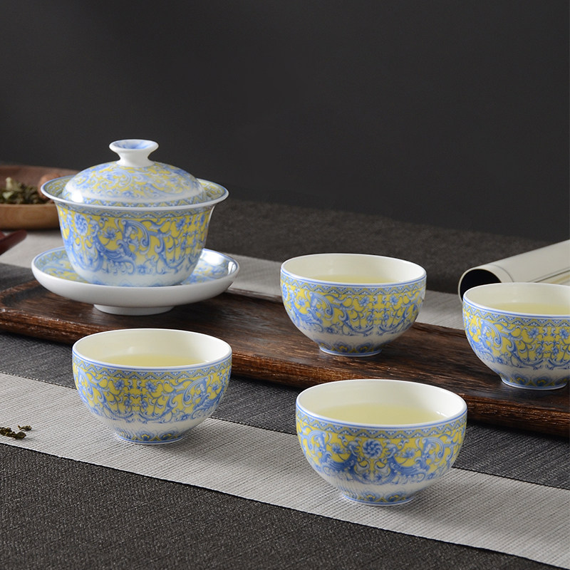 华光国瓷 高档骨瓷茶具套装中式轻奢送礼7头茶杯盖碗功夫茶具怡情