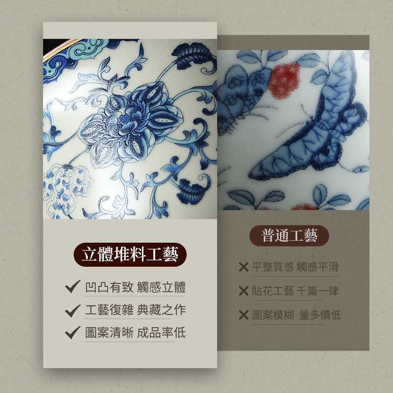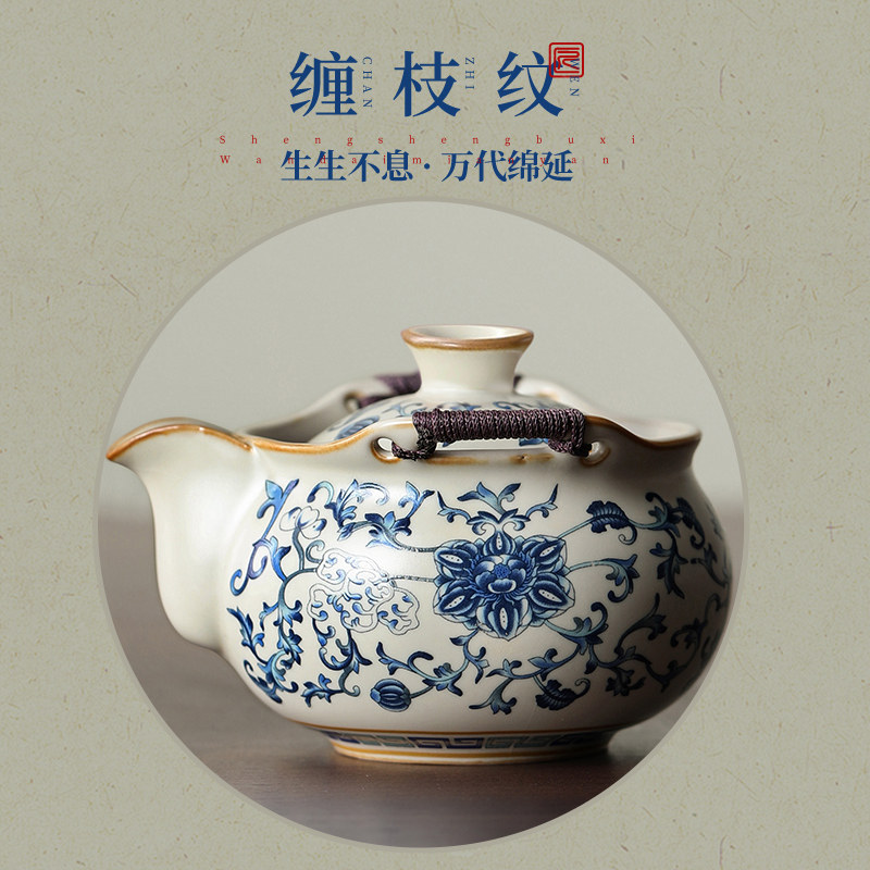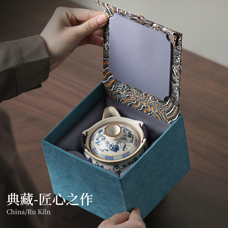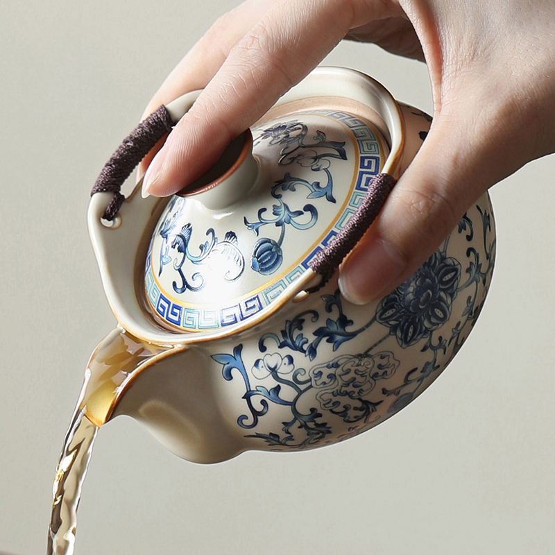 青花汝窑手抓壶盖碗茶杯高档大号防烫家用功夫茶具泡茶茶碗带盖