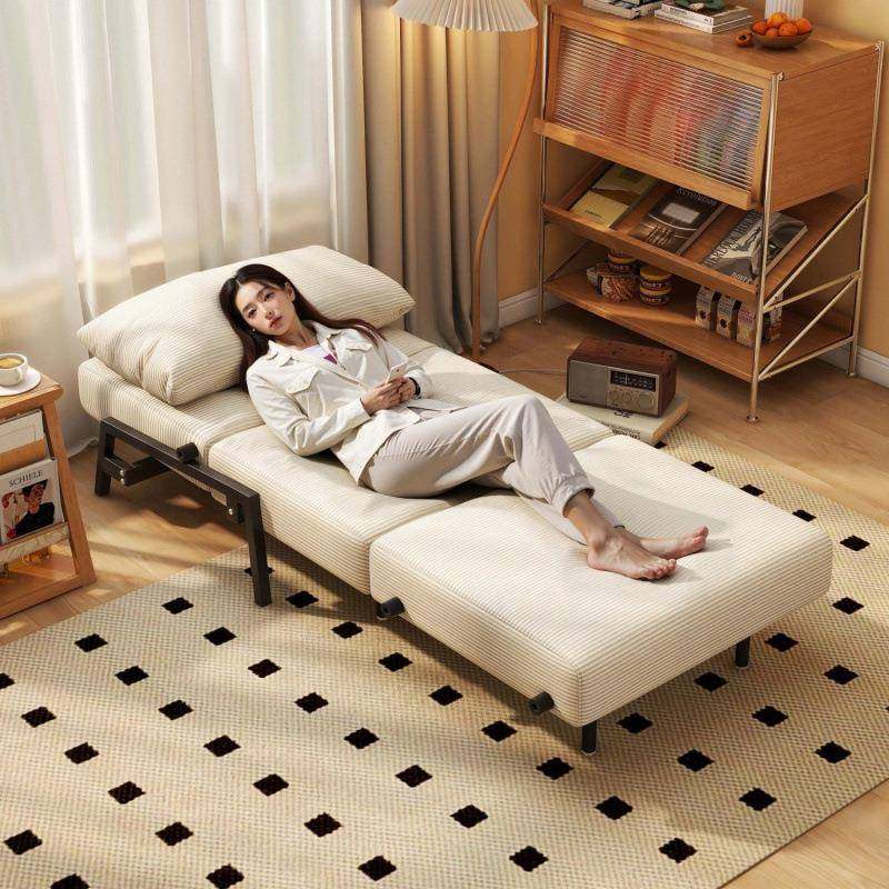 沙发床折叠两用单人推拉床客厅书房阳台灯芯绒复古布艺小户型沙发