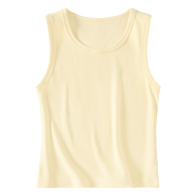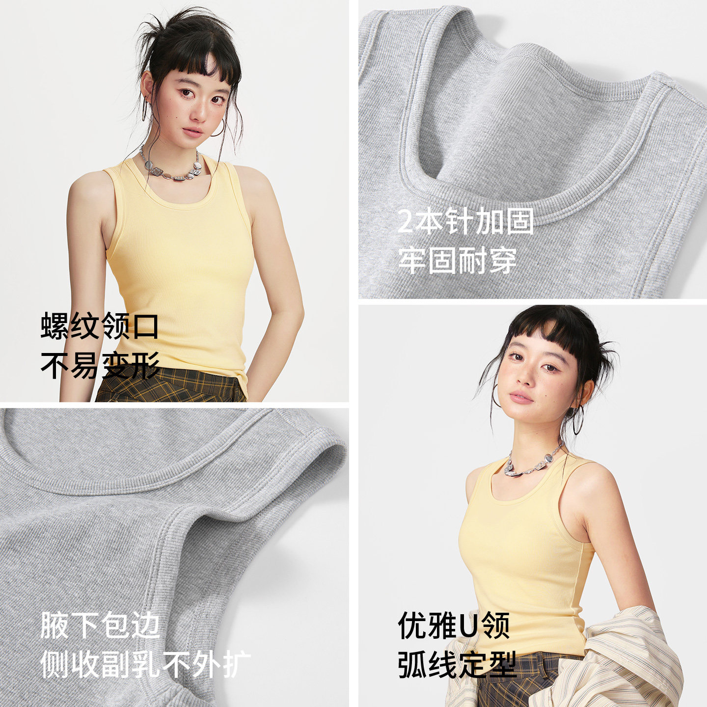 HENNY RUE亨尼露春夏大圆领基础款坑条高弹显瘦免穿文胸吊带背心