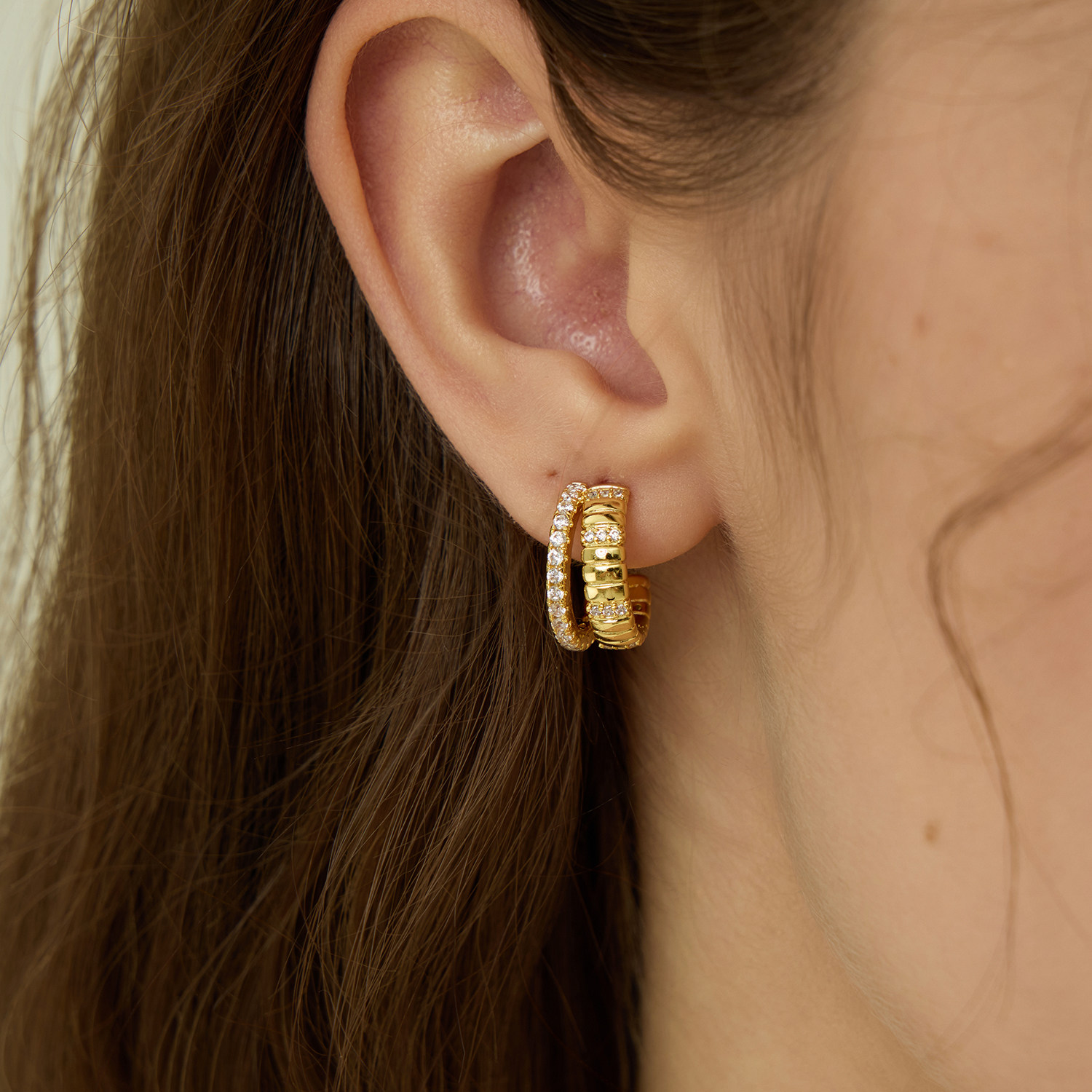 双层镶钻耳环设计感耳圈女士2025新款爆款高级感轻奢圈圈素圈耳饰