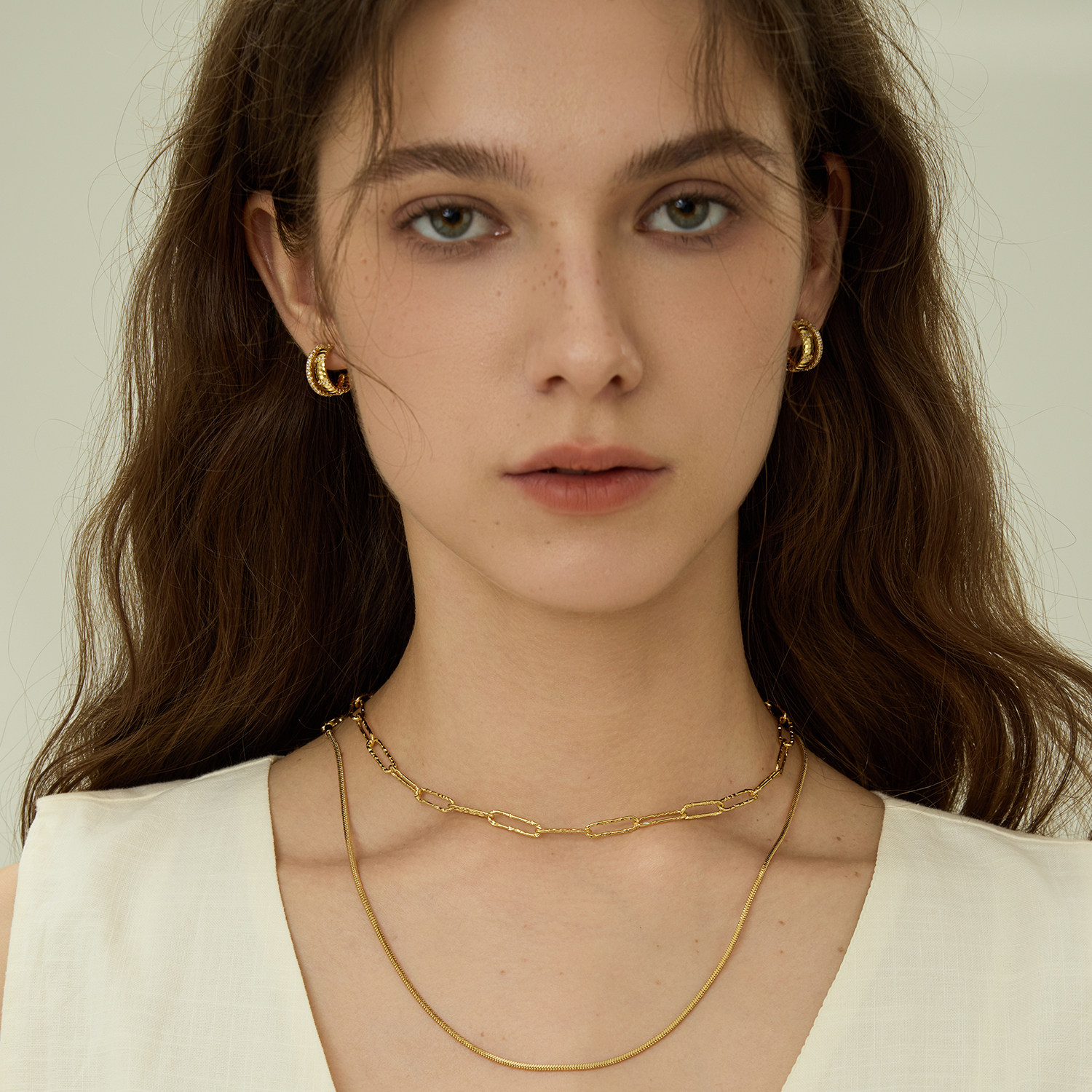 明星同款ARSIS双层蛇骨耳钉耳环复古耳饰高级金色精致简约银色