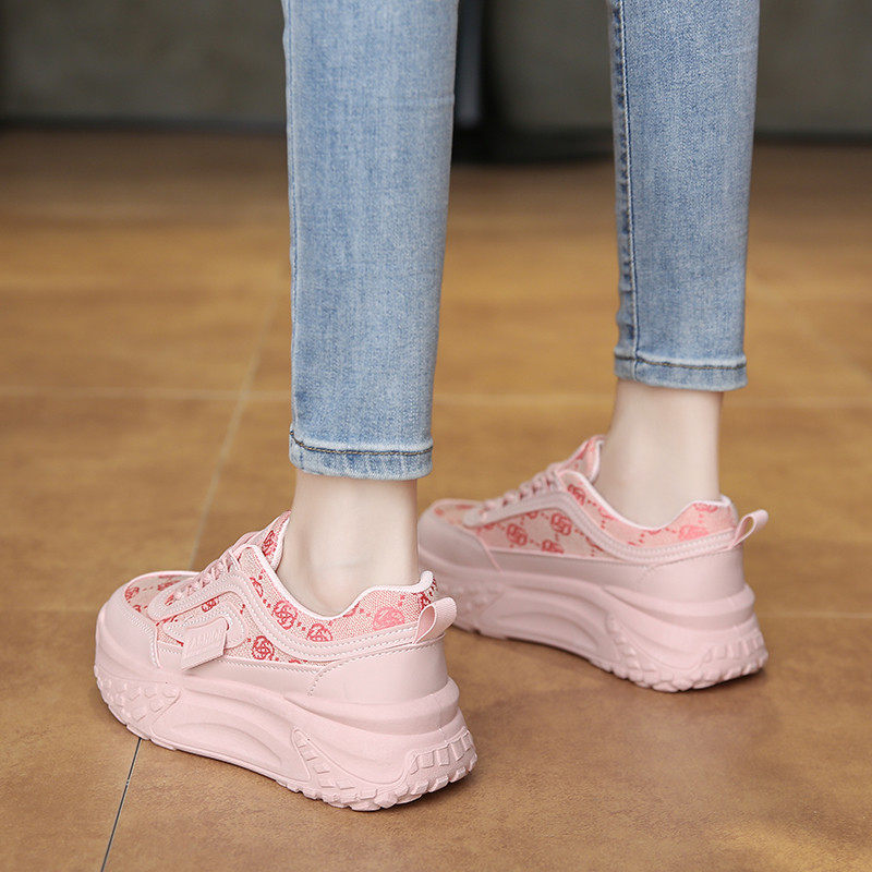 时尚蜘蛛王女鞋老爹鞋2026爆款秋冬粉色运动鞋34码真皮孕妇软底松