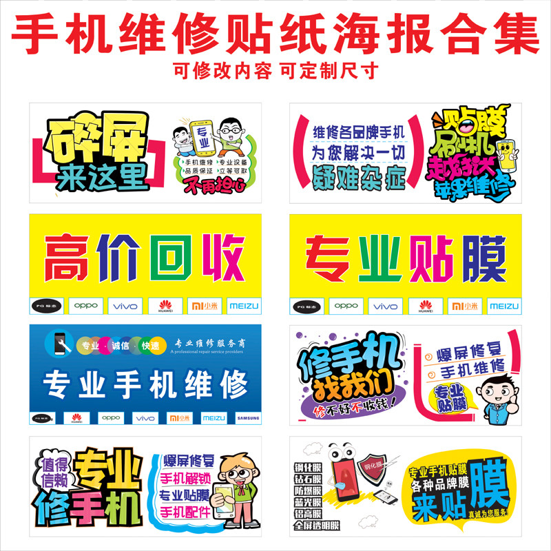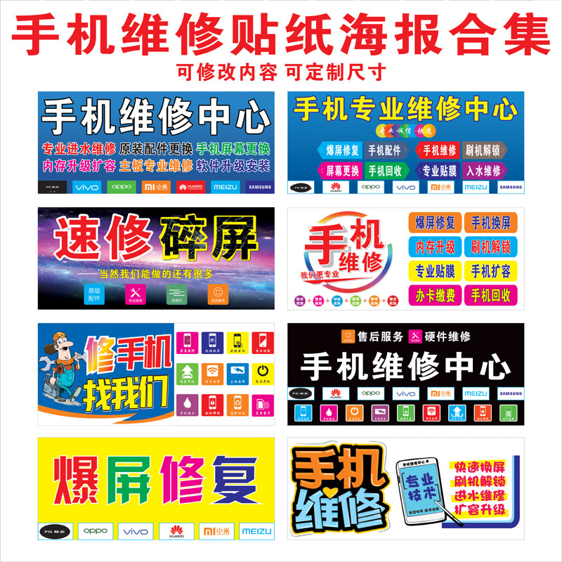 手机维修柜台贴纸手机店维修海报宣传爆屏修复手机配件贴纸背景贴