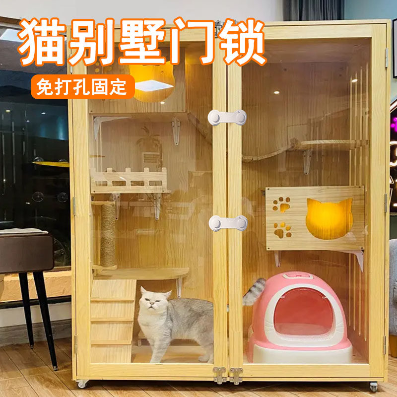 猫别墅门锁扣玻璃实木猫柜笼子展示猫舍防护锁宠物安全锁卡扣固定