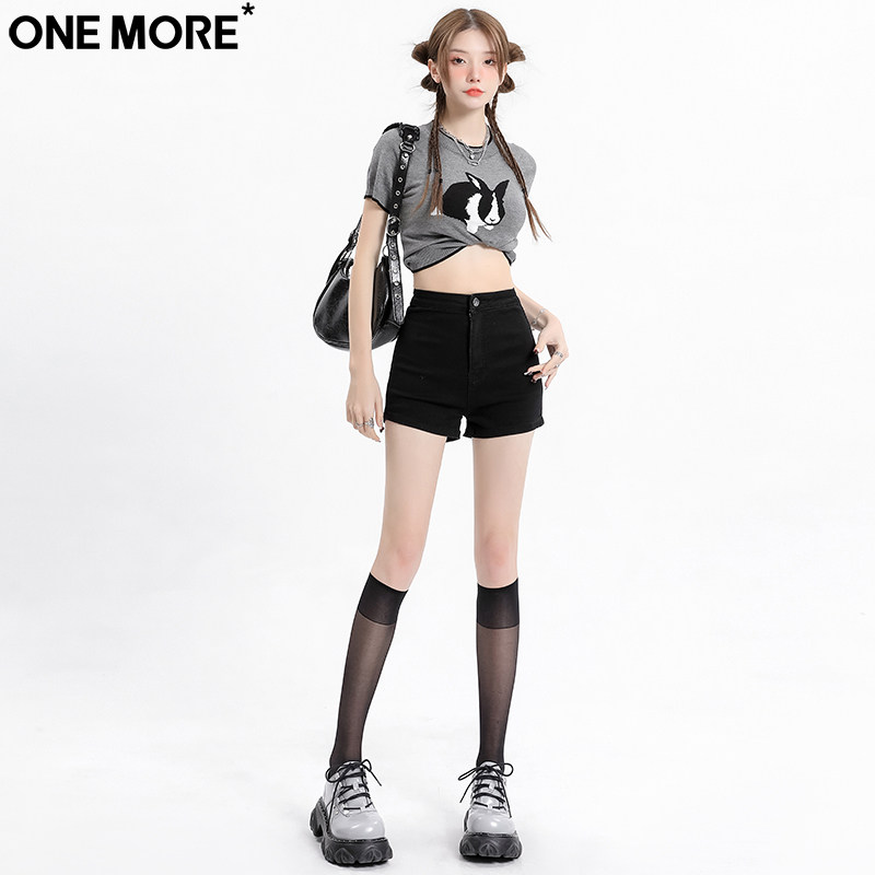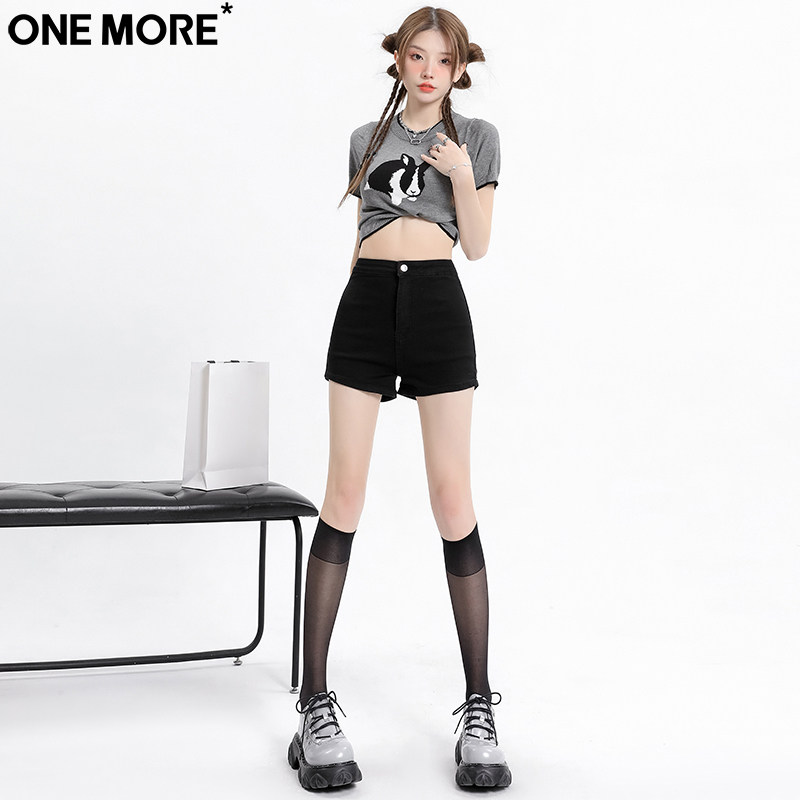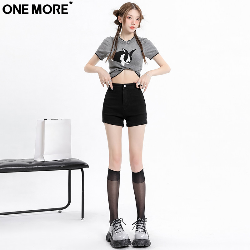 One More韩版纯欲风高腰牛仔短裤女夏季新款辣妹黑色a字超短热裤