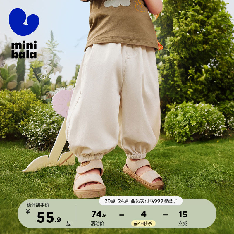迷你巴拉巴拉男女童裤子春夏亲肤轻薄束口灯笼裤长裤儿童防蚊裤