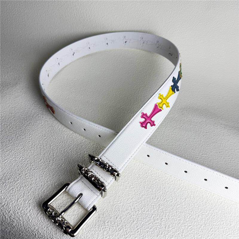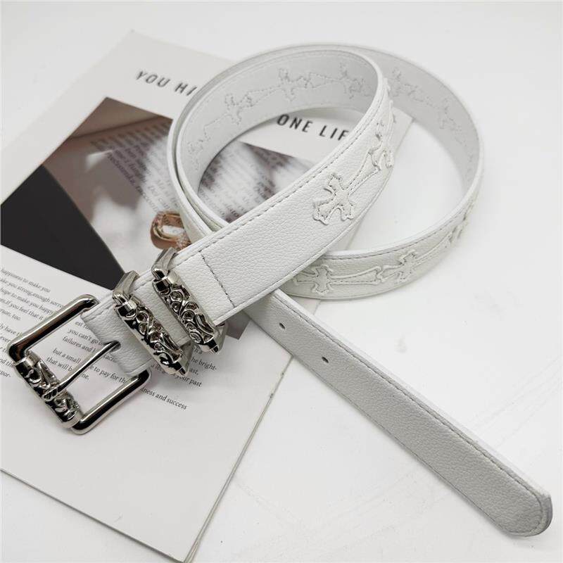 个性荔枝纹白色克罗新款皮带男女文艺青年腰带复古时尚藤蔓滚轮