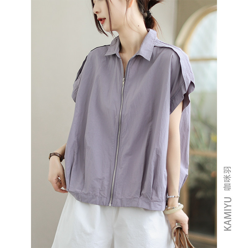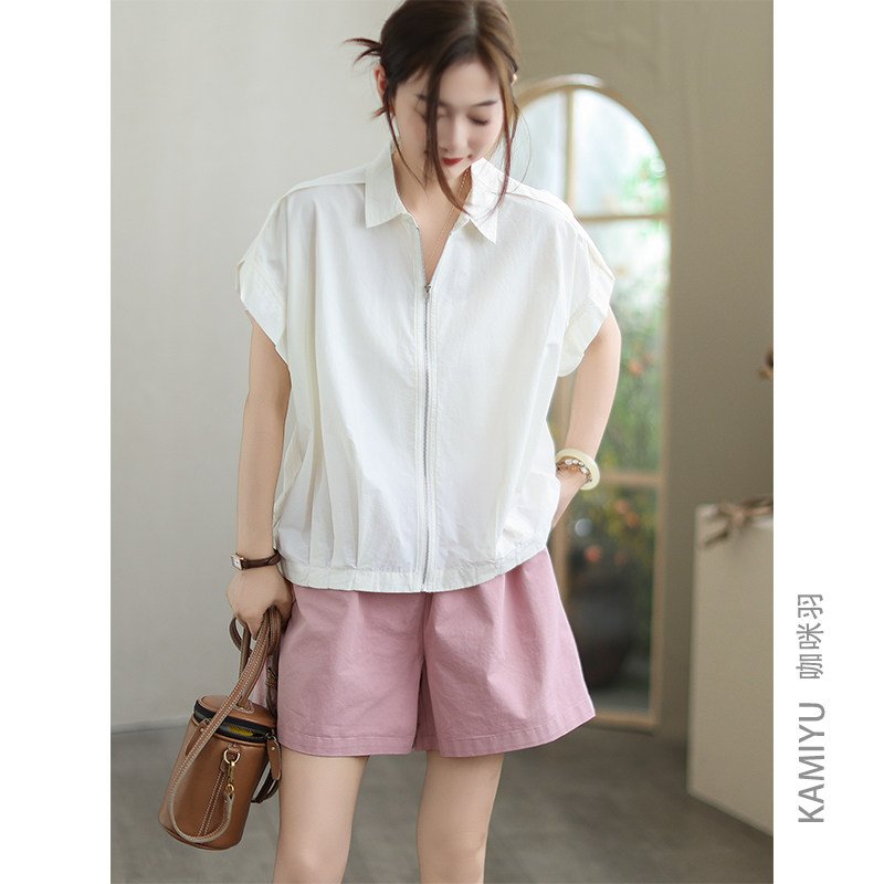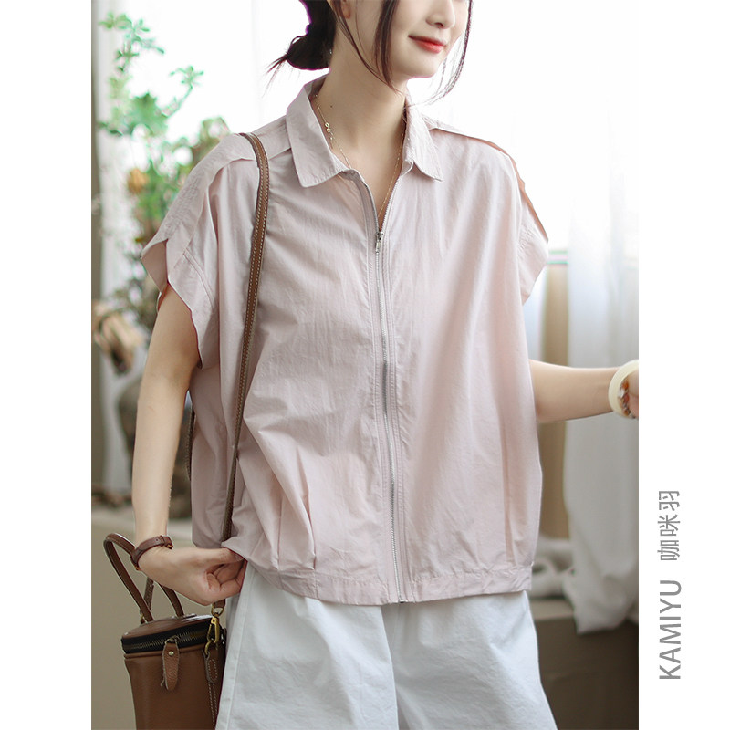 咖咪羽短袖女夏季新款天丝棉女士上衣拉链纯色百搭简约女装T恤女