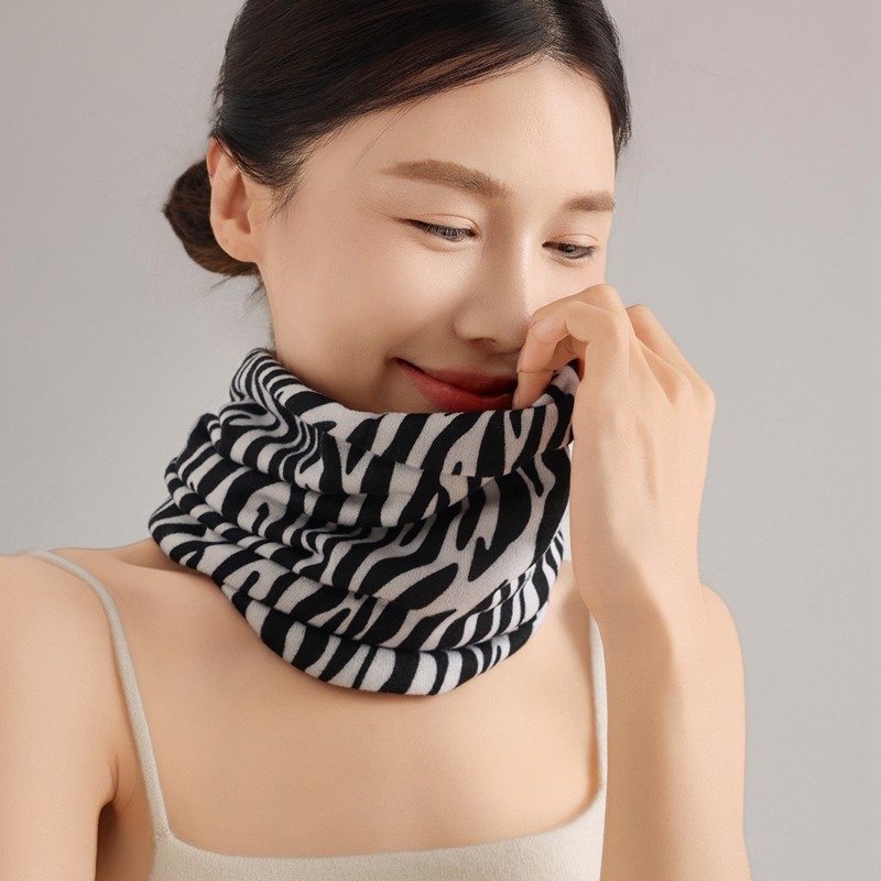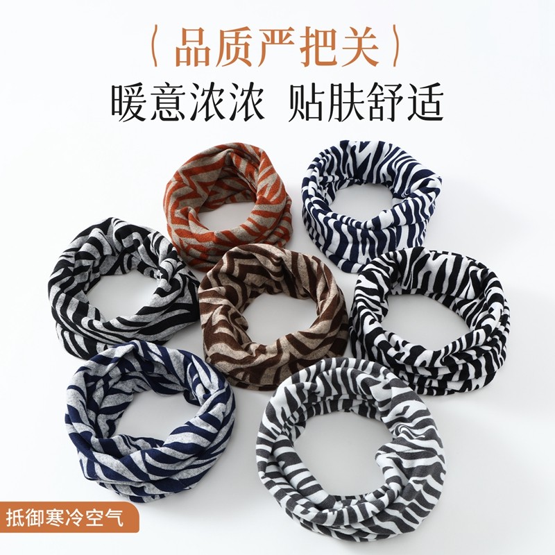 围脖男女士秋冬季保暖韩版百搭全纯棉斑马纹护颈椎脖子围巾脖套男