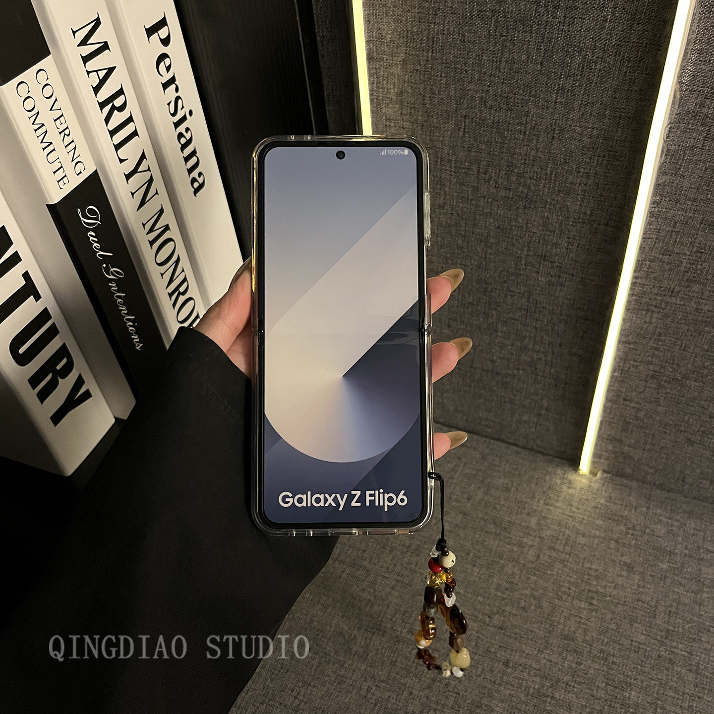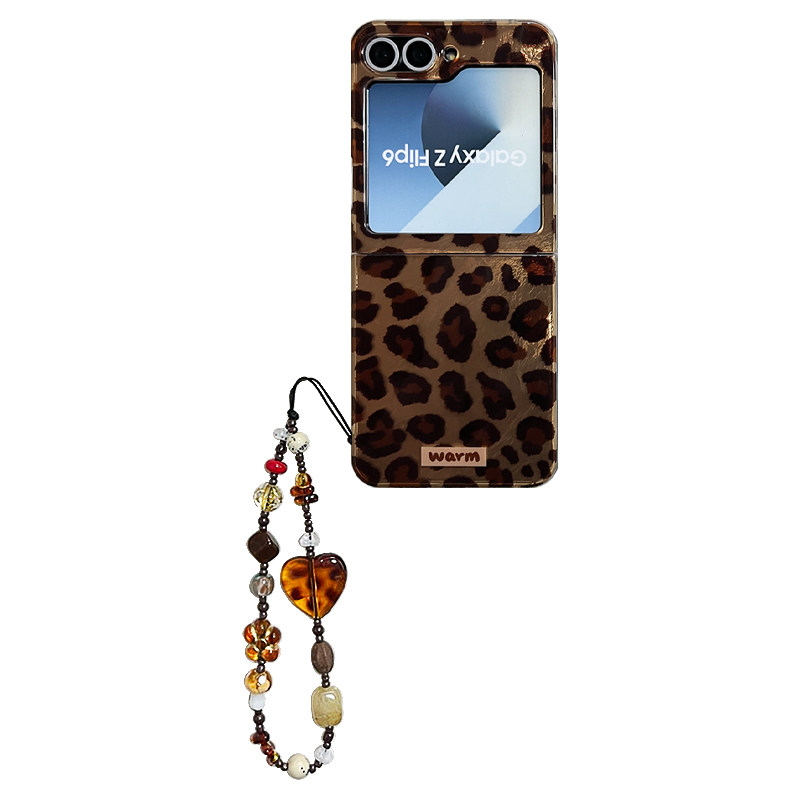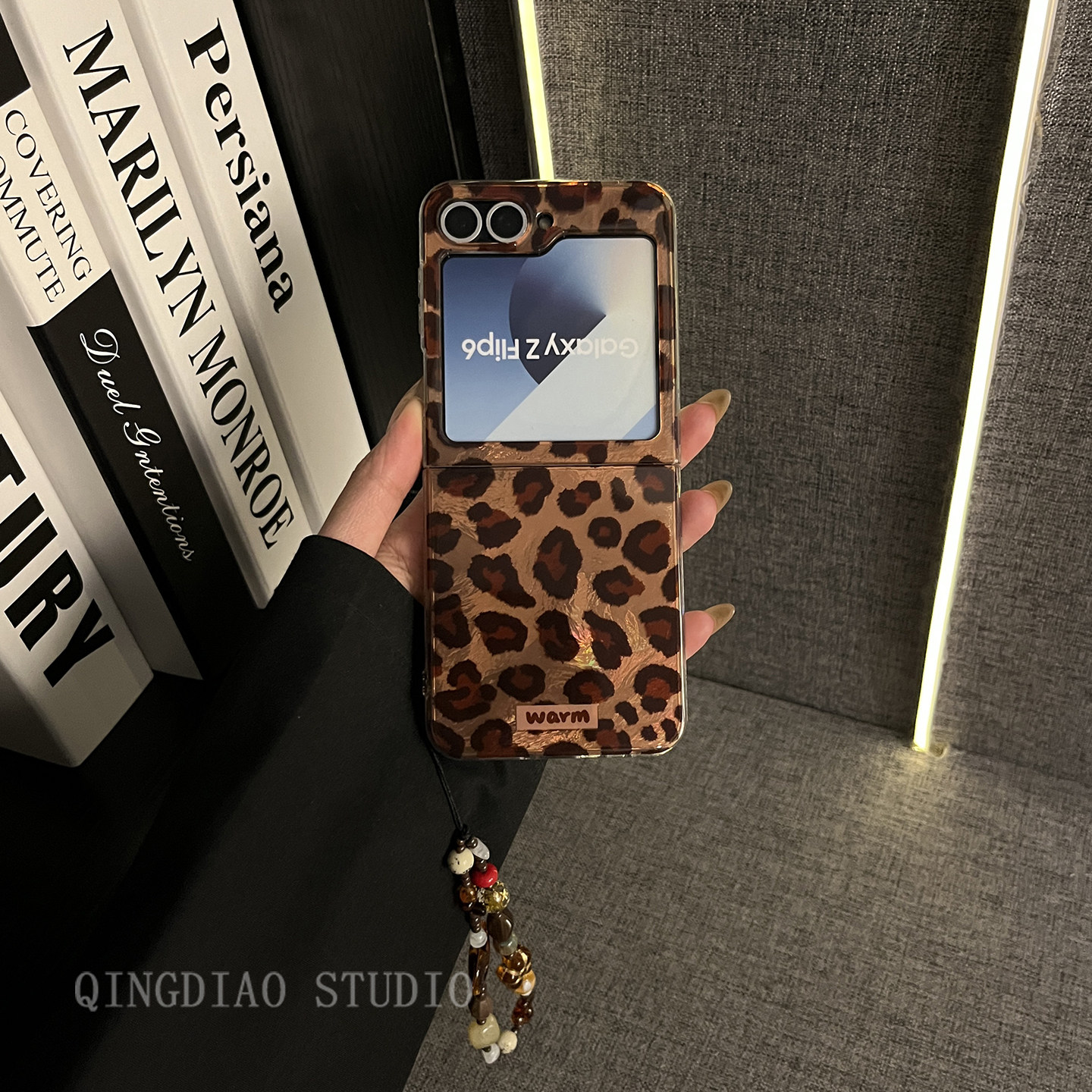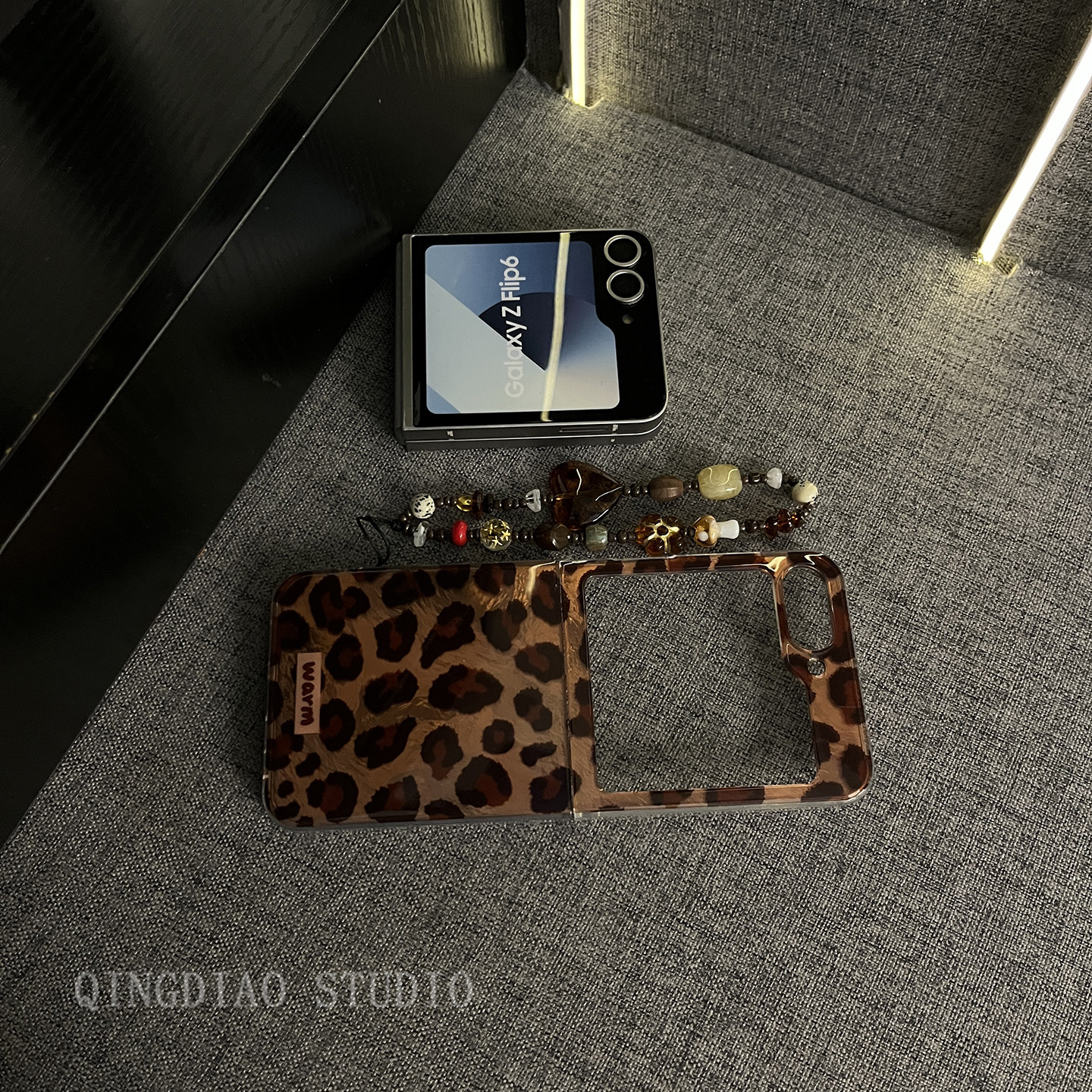 轻调 ins奢华棕锡纸豹纹琥珀串珠手链适用于三星zflip7/6/5/4/GalaxyW25Flip手机壳新款折叠屏翻盖防摔保护套