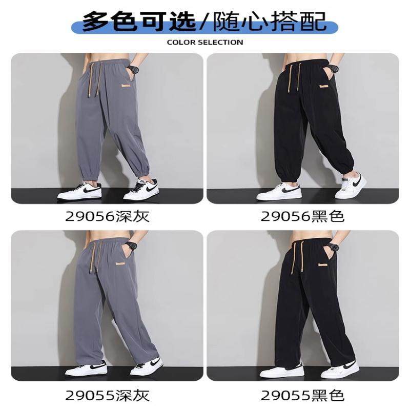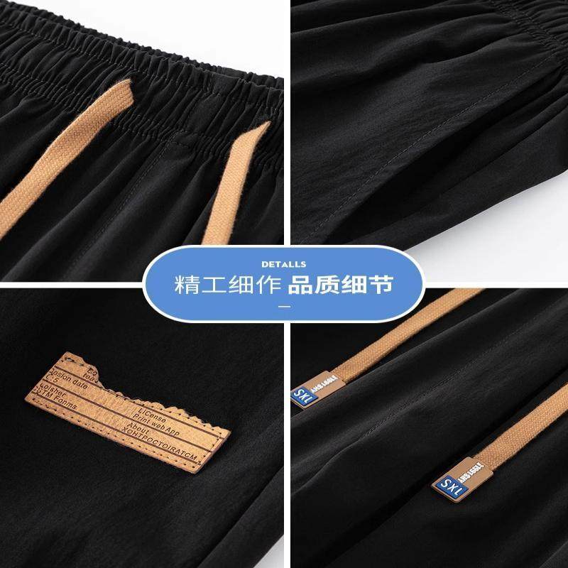 啄木鸟冰丝裤子男士休闲长裤夏季宽松大码运动束脚九分速干男裤