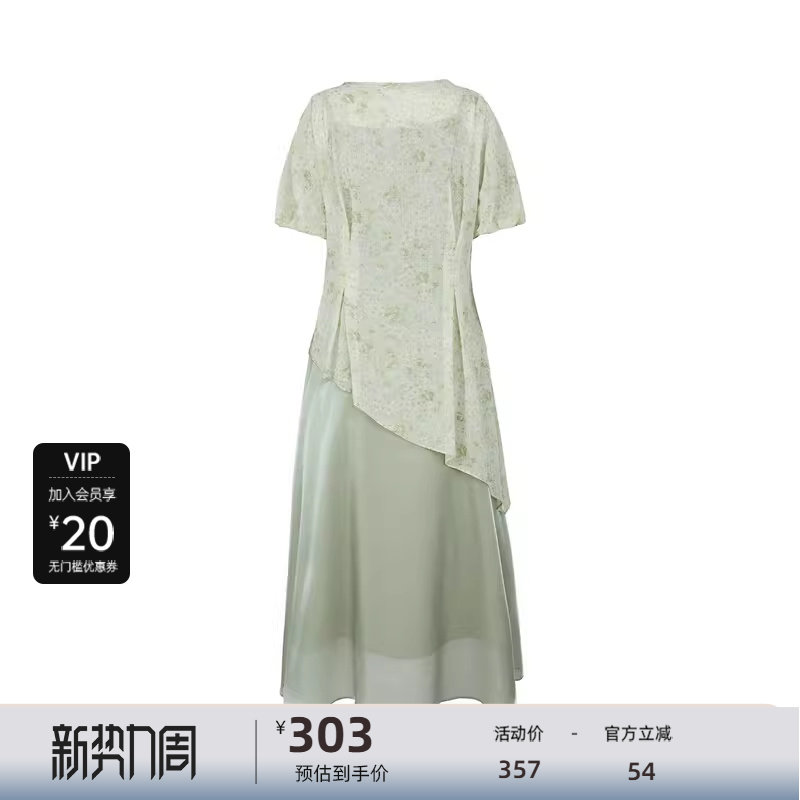 【热销补货】欧时力 褶皱短袖连衣裙女2026春新款收腰显瘦小黑裙