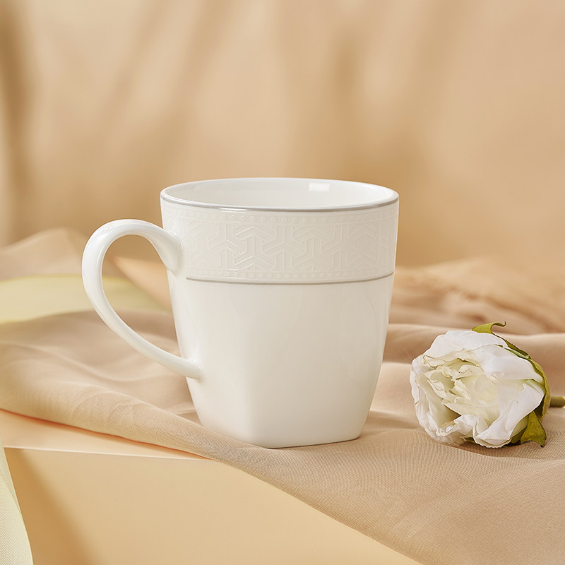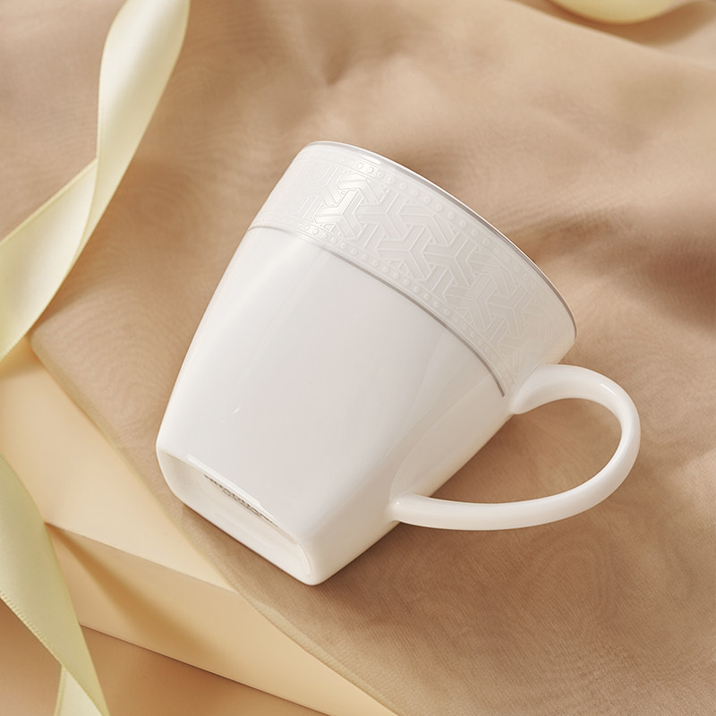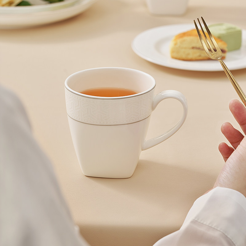 华光国瓷 骨瓷水杯马克杯纯白简约创意茶杯咖啡杯礼盒装 尔雅东方
