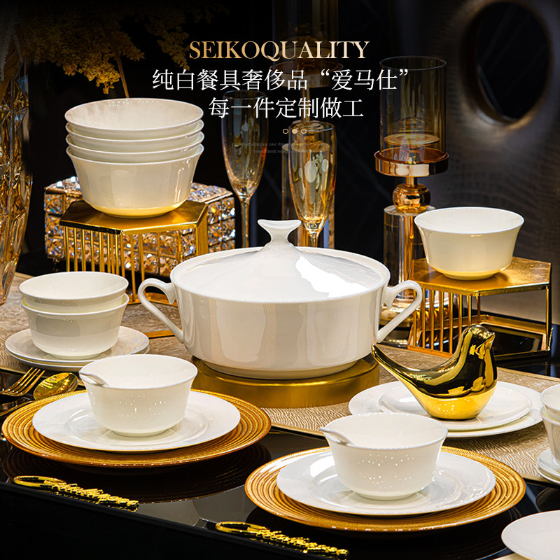 碗家用2025新款高颜值景德镇骨瓷餐具套装纯白釉下彩高温陶瓷碗碟