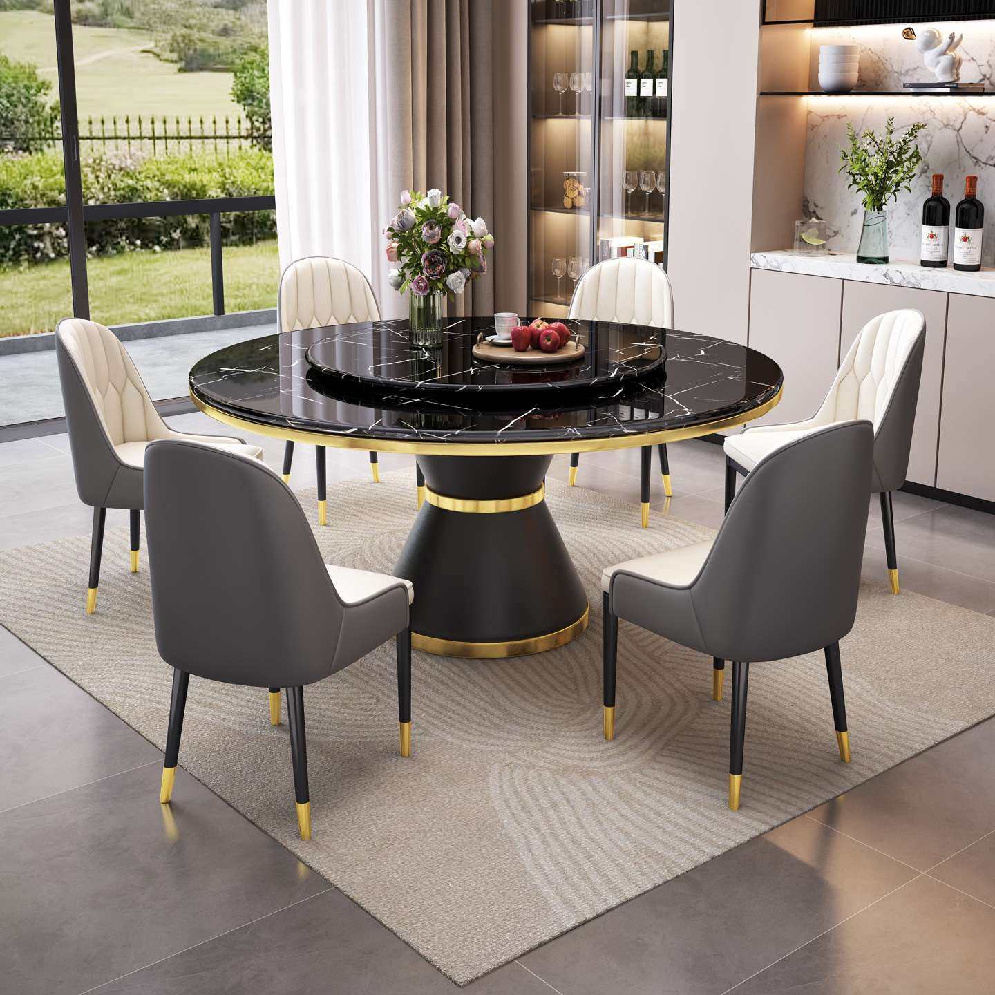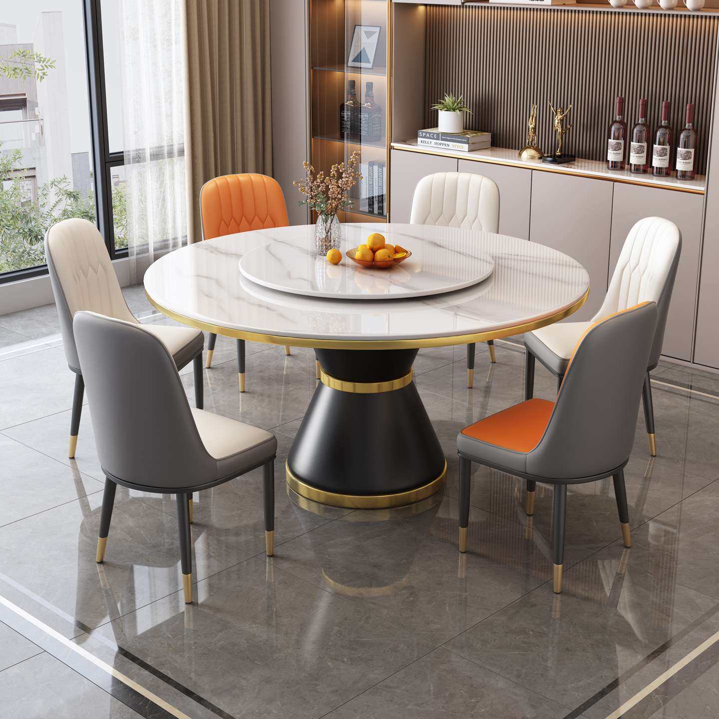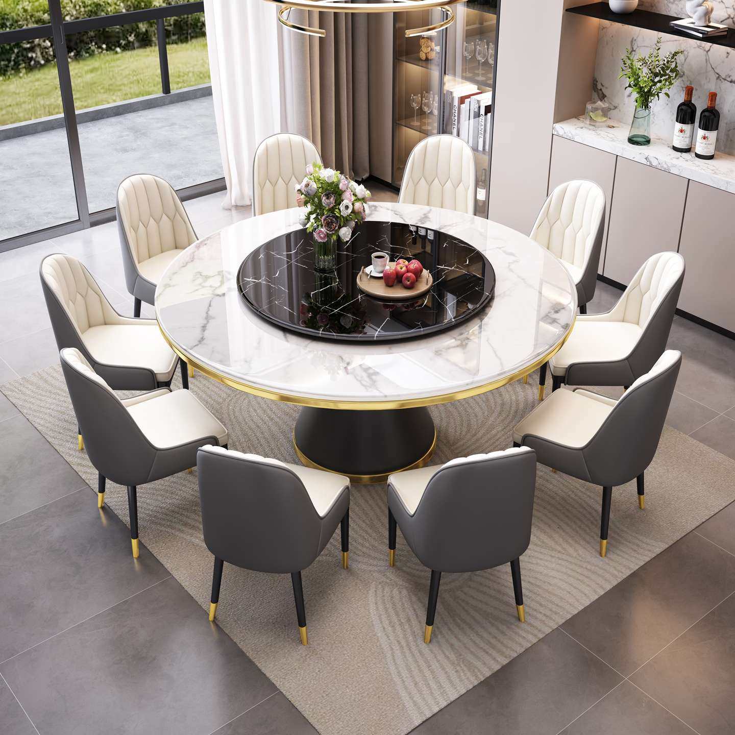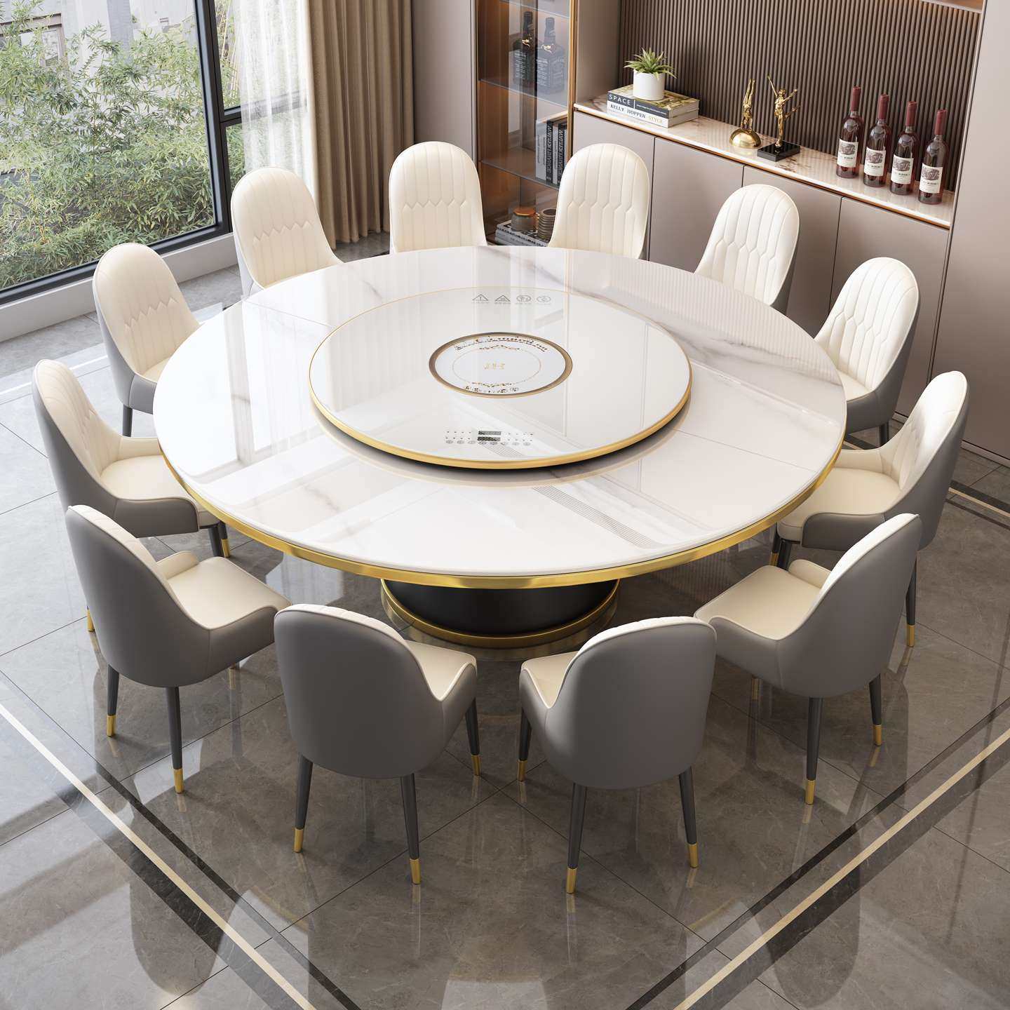 圆形岩板餐桌轻奢简约家用餐饮商用饭桌酒店大理石圆餐桌旋转圆盘