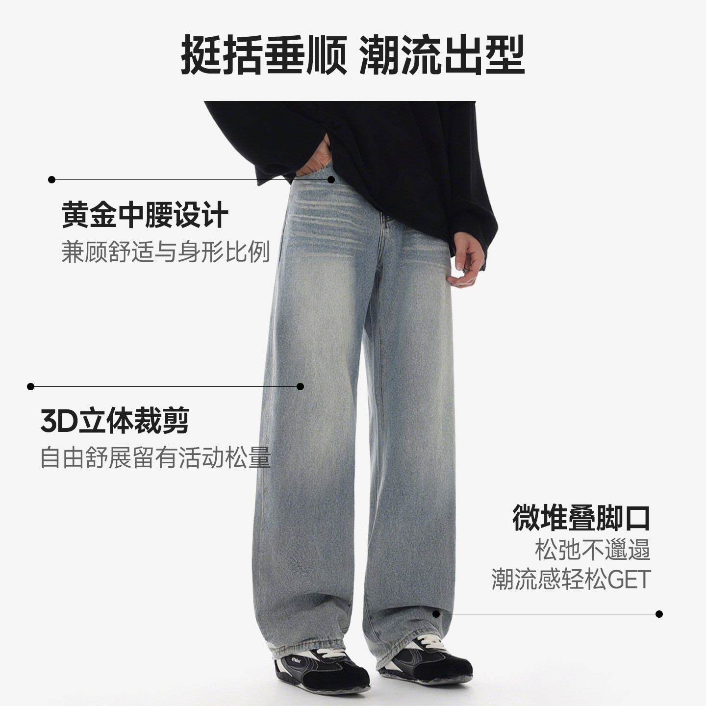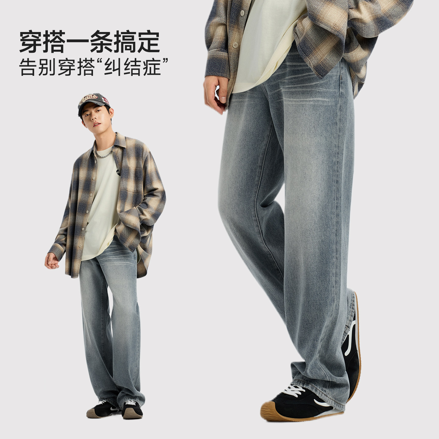 美特斯邦威牛仔裤男士2025秋季新款休闲美式复古直筒宽松拖地长裤