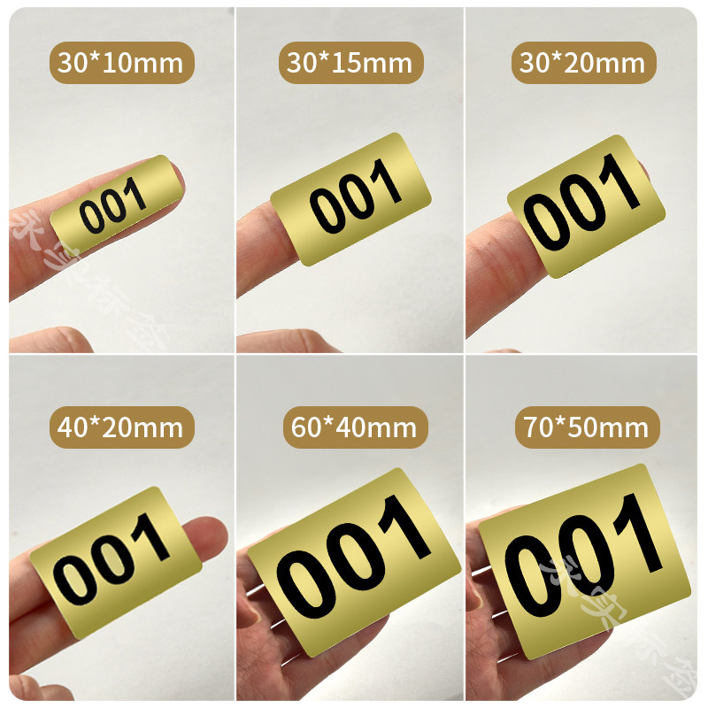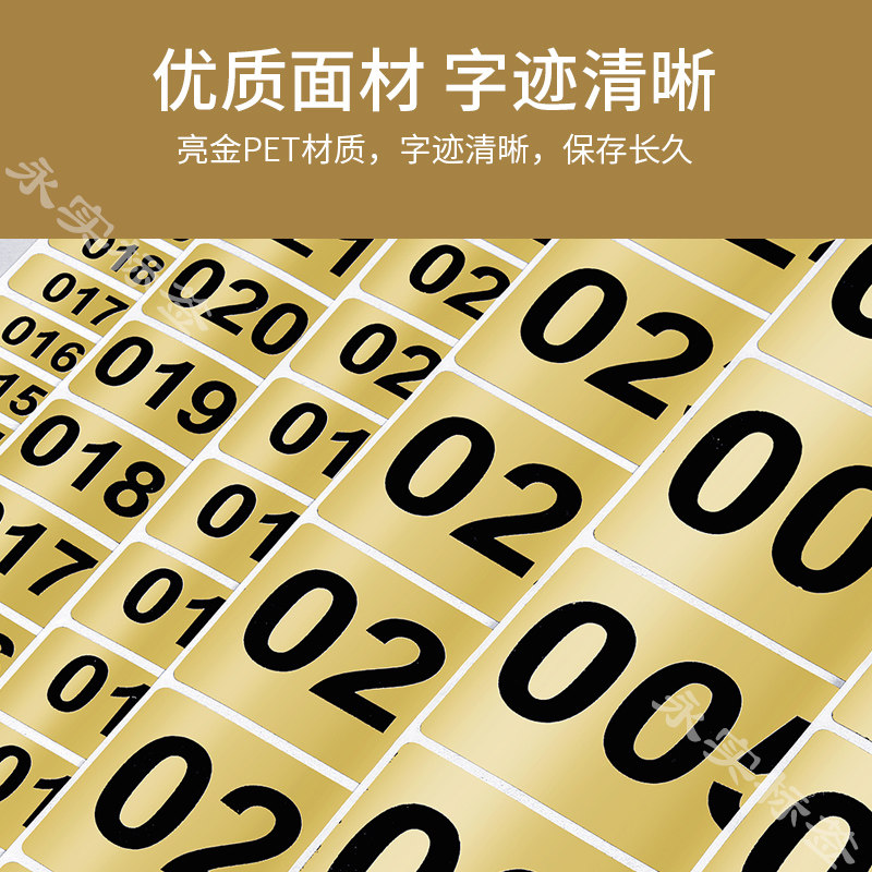 金色数字标签贴防水防油不干胶贴纸高档定制字母编号001-1000衣柜储物柜序列号编码试用装赠品非卖品封口贴