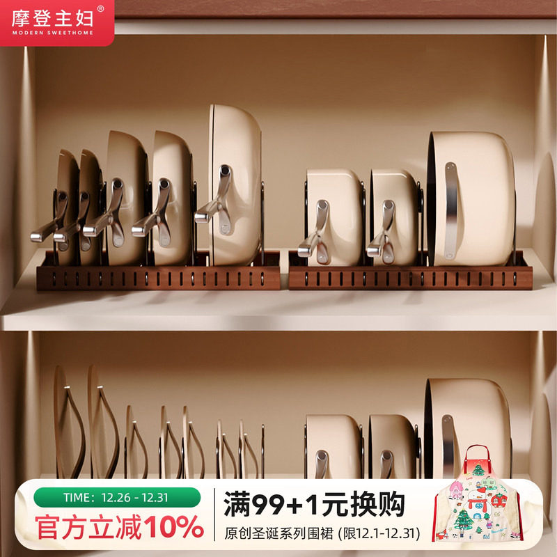 摩登主妇中古风锅具收纳架可调节厨房多功能台面置物架锅盖放置架