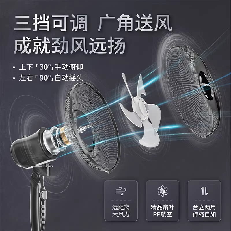 奥克斯落地扇电风扇用落地式风扇客厅立式办公小风扇轻音大风力