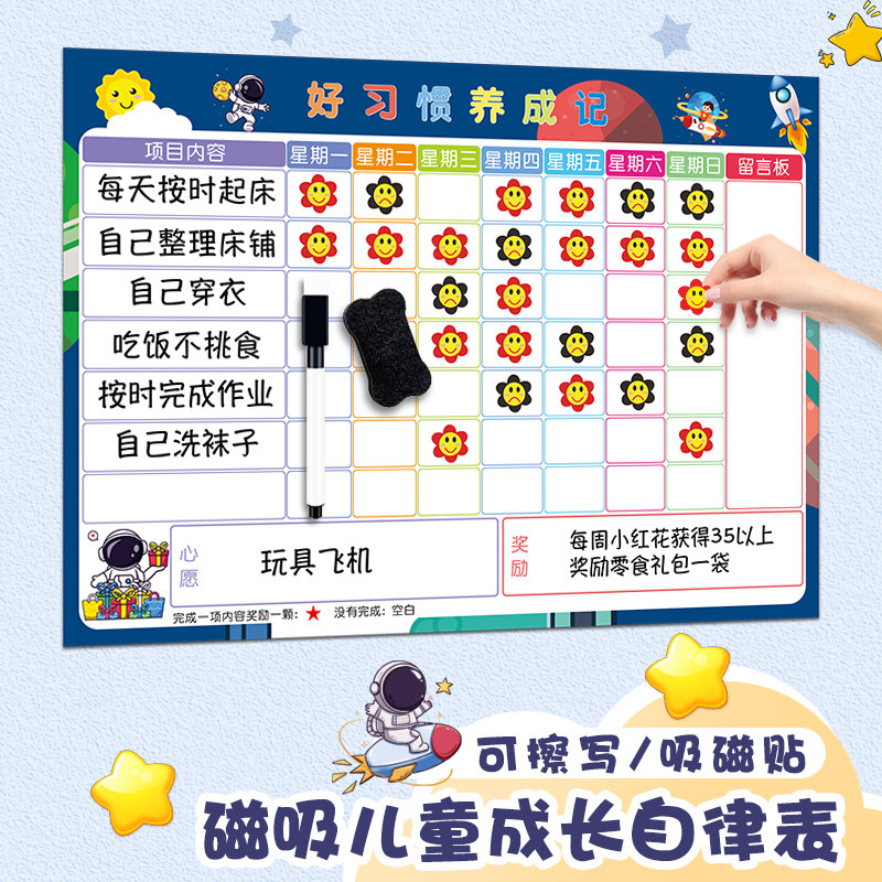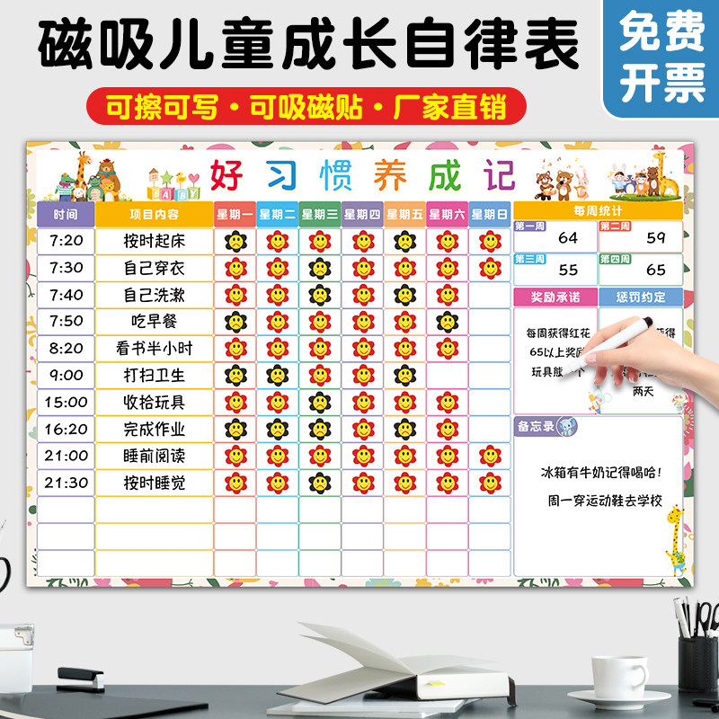 生活通儿童成长自律表磁性墙贴学生时间管理宝宝奖励贴纸积分卡孩子好习惯养成表扬板榜幼儿园学习打卡计划表
