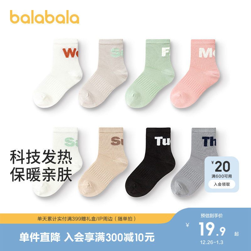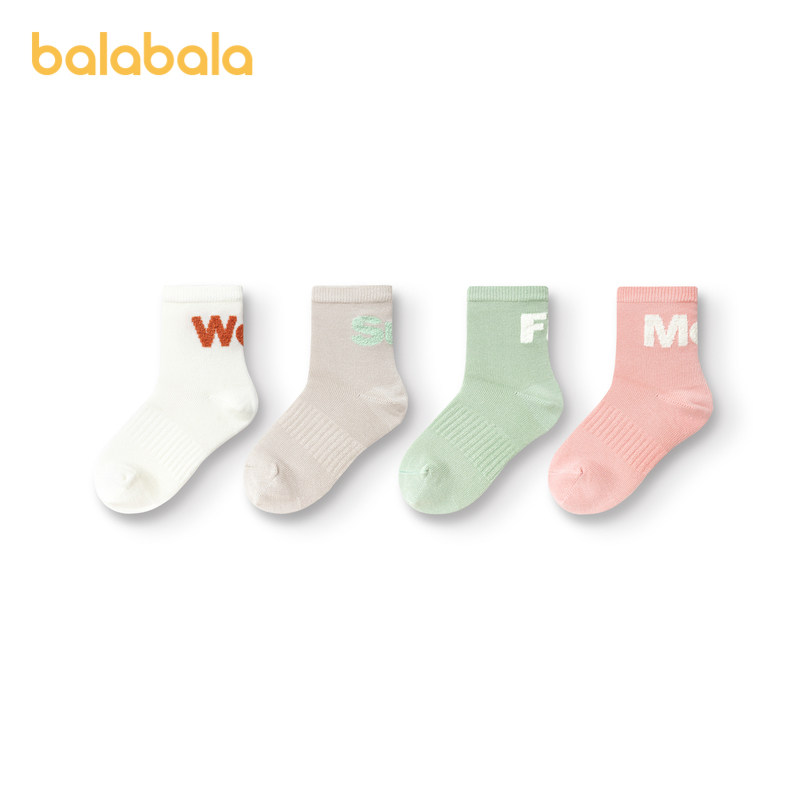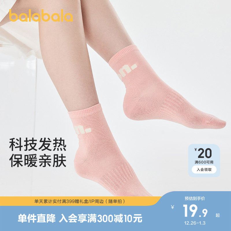 巴拉巴拉儿童袜子秋冬加厚男童中筒袜女童棉袜发热学生舒适四双装