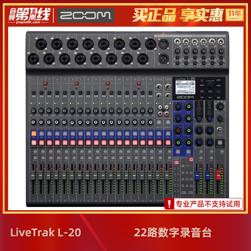 ZOOM LiveTrak L-20 22路/轨/通道专业数字调音台多轨录音机声卡